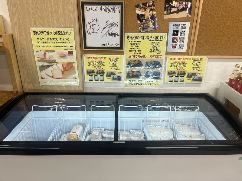 そして、塩むすび5種、お稲荷3種、生米パン2種が11月23日(土・祝)より、たけこま市場で先行販売を開始し、イートインスペースで食べることも可能です。発売以来、竹駒神社への参拝客や地元の方に喜んでいただいています。年末年始には初詣などで多くの参拝客が訪れることが予想され、年間約180万人が参拝する神社内の販売所であるため、今後の販売にも期待しています。