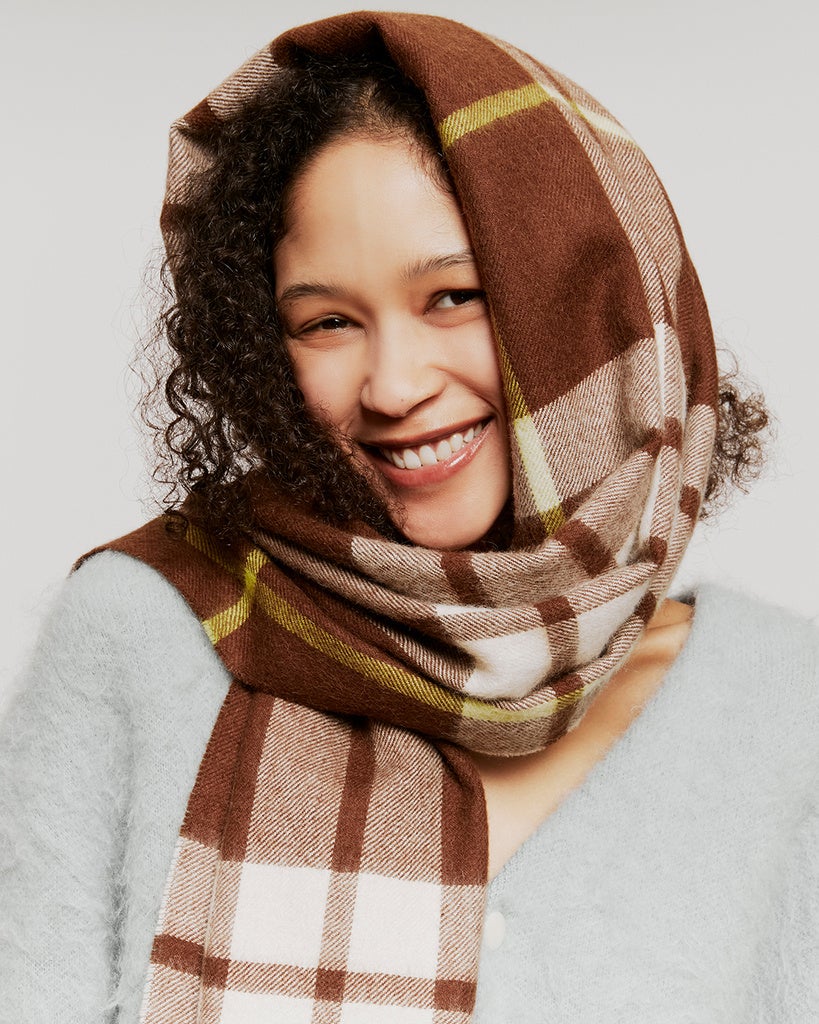 トゥモローランドが今シーズン別注したコレクションでは、ペルー背景でアルパカ素材を使用したブランケットをマフラーサイズに仕様変更。