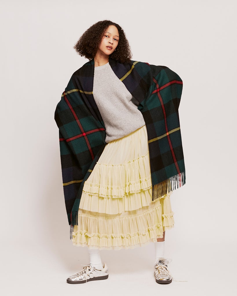 オーセンティックなタータンチェックをベースにしながらも、配色や柄ゆきが他には見ないモダンかつ新鮮な配色になっています。
