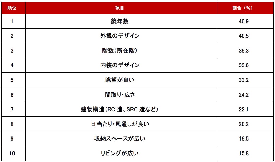 3位には「階数(所在階)」がランクインし、「エレベーターがあれば特に気にする必要はないと思う」といったコメントが寄せられました。