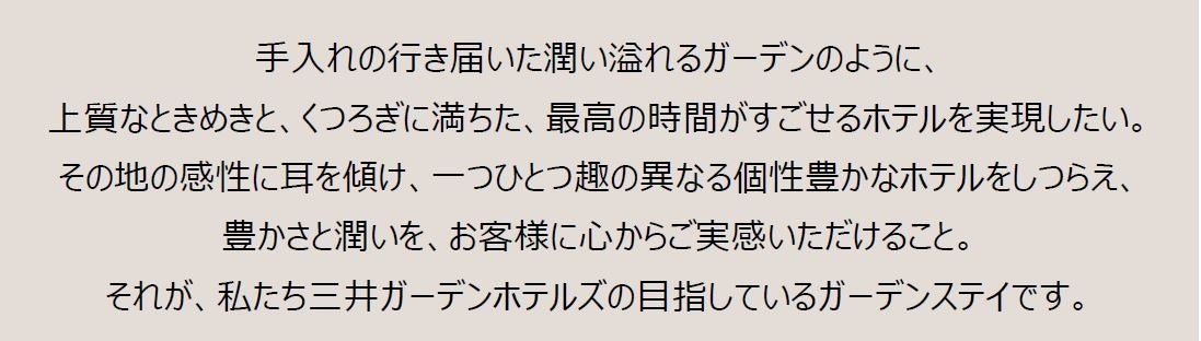 ■三井ガーデンホテルズの新しいブランドタグライン 「Stay in the Garden」