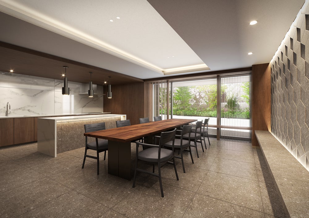 本事業は東京メトロ丸ノ内線の始発駅「方南町」駅より徒歩5分の交通利便性の高い立地に位置しており、また、40㎡台の1LDKから80㎡台の4LDKまで多様なライフスタイルに対応したプランをご用意しています。共用施設として、ご家族・ご友人とのパーティなどにも利用可能な「キッチンラウンジ」やリモートワーク等にご利用いただける「パーソナルスペース」等を備えるほか、地域の憩いの場としてご利用いただける敷地内の広場空間「コミュニティガーデン」や入居者専用の「屋上庭園」など、生活の中で身近に緑を感じることのできる計画としています。