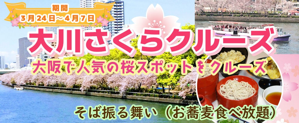 3月24日~4月7日限定!お一人様¥3,980- 春季限定水都大阪の定番お花見クルーズ 大川さくらクルーズ +そば振る舞い(お蕎麦食べ放題)