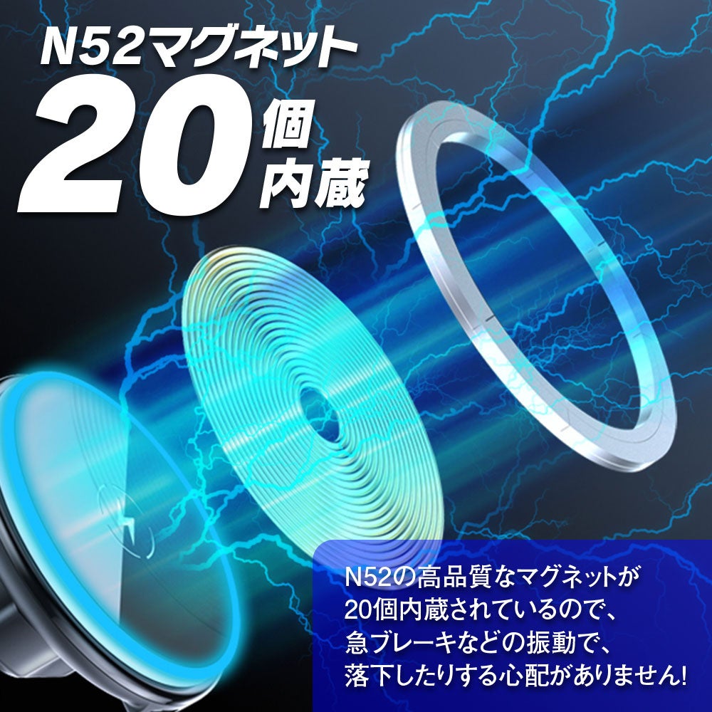 N52の高品質なマグネットが20個内蔵されているので、急ブレーキなどの振動で落下したりする心配がありません。