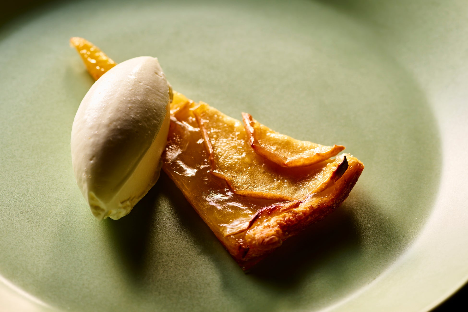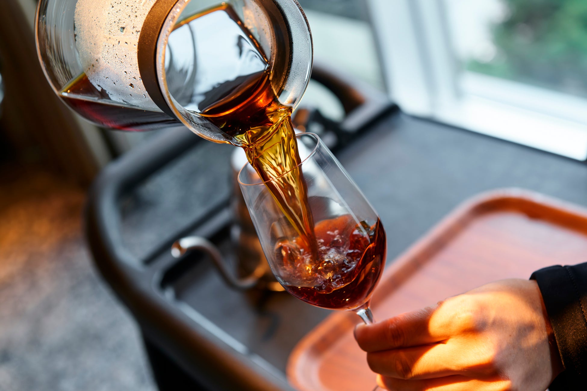 一番遅い、13時30分からのプランでご予約のお客さまには、ちょっと遅めのランチを締めくくる、特別な時間をご用意しております。コーヒーインストラクターによるハンドドリップコーヒーを、ワイングラスでお席までお持ちし、お一人お一人にコーヒーにまつわるお話をさせていただきます。また、ご提供前に焼き直す温かい薄いフランス風のアップルパイに、アイスクリームを添えるデザートをご提供しています。