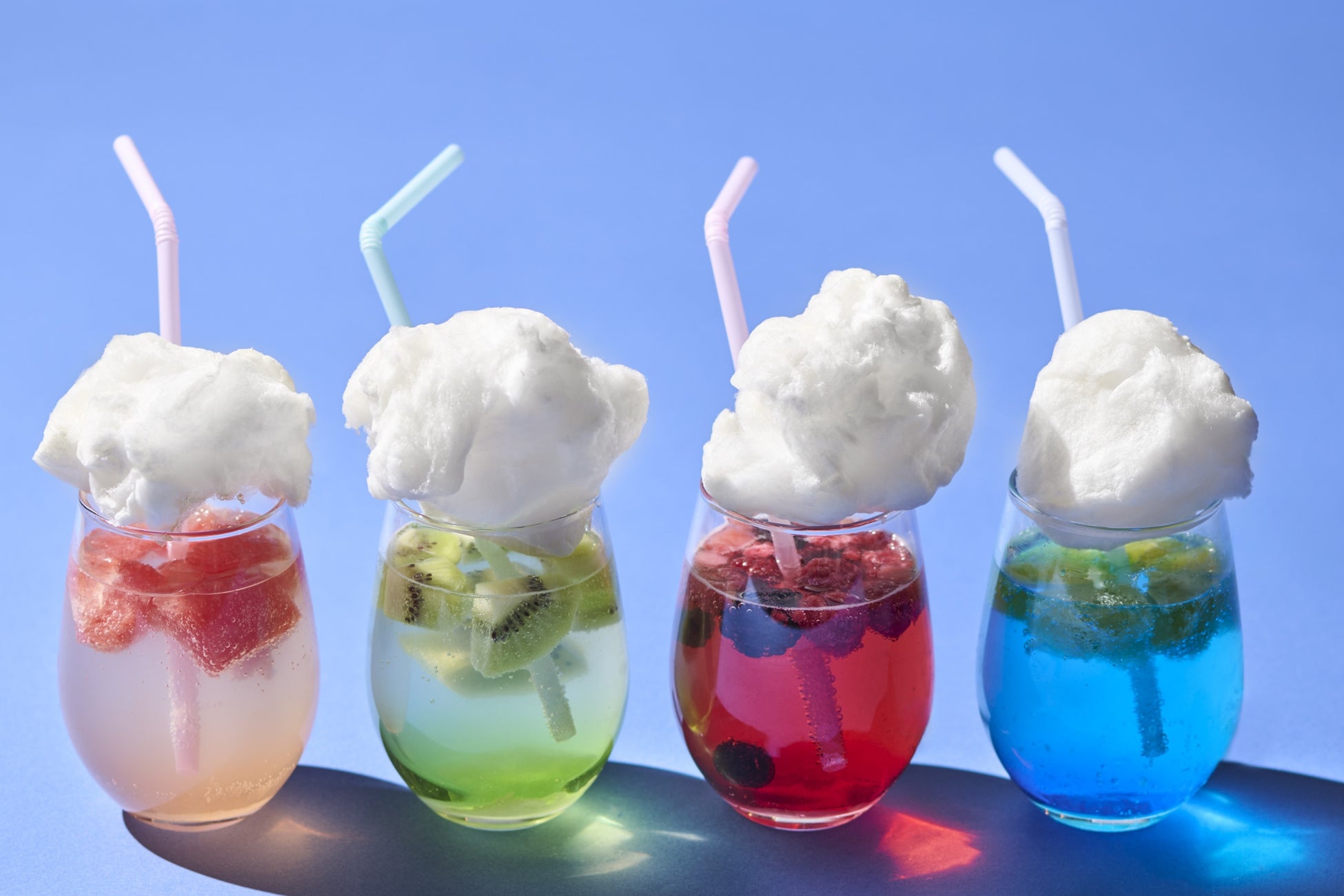乾杯ドリンク付きプランでお申し込みのお客さまには、通常のスパークリングワインに加え、思わず写真を撮りたくなるわたあめが可愛らしいフ ルーツソーダを新アイテムに加えました。