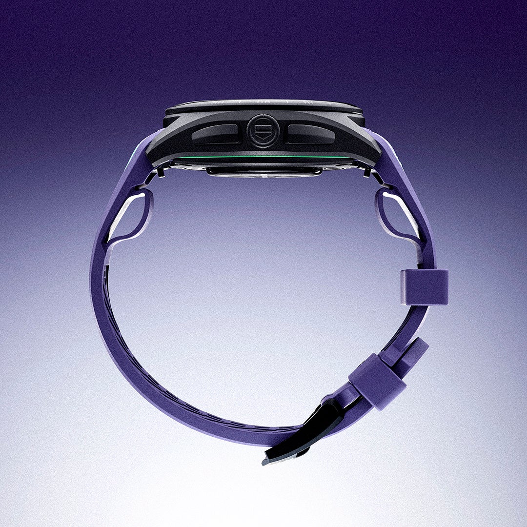 色彩も同様に、細部にまでこだわりが注がれています。ディープバイオレットのカラーは、イングリッシュパープルから着想を得たもので、今回の発表のために生まれたコラボレーションシューズ TAG Heuer & New Balance FuelCell SuperComp Elite v5 と調和するようデザインされています。このシューズは、レース当日に向け、自らの限界を押し広げ、最速タイムを追い求めるランナーのために作られたもの。カーボンファイバープレートと超高反発PEBAミッドソールを搭載した超軽量設計が、1秒たりとも無駄にできないシーンでランナーを最大限にサポートします。
