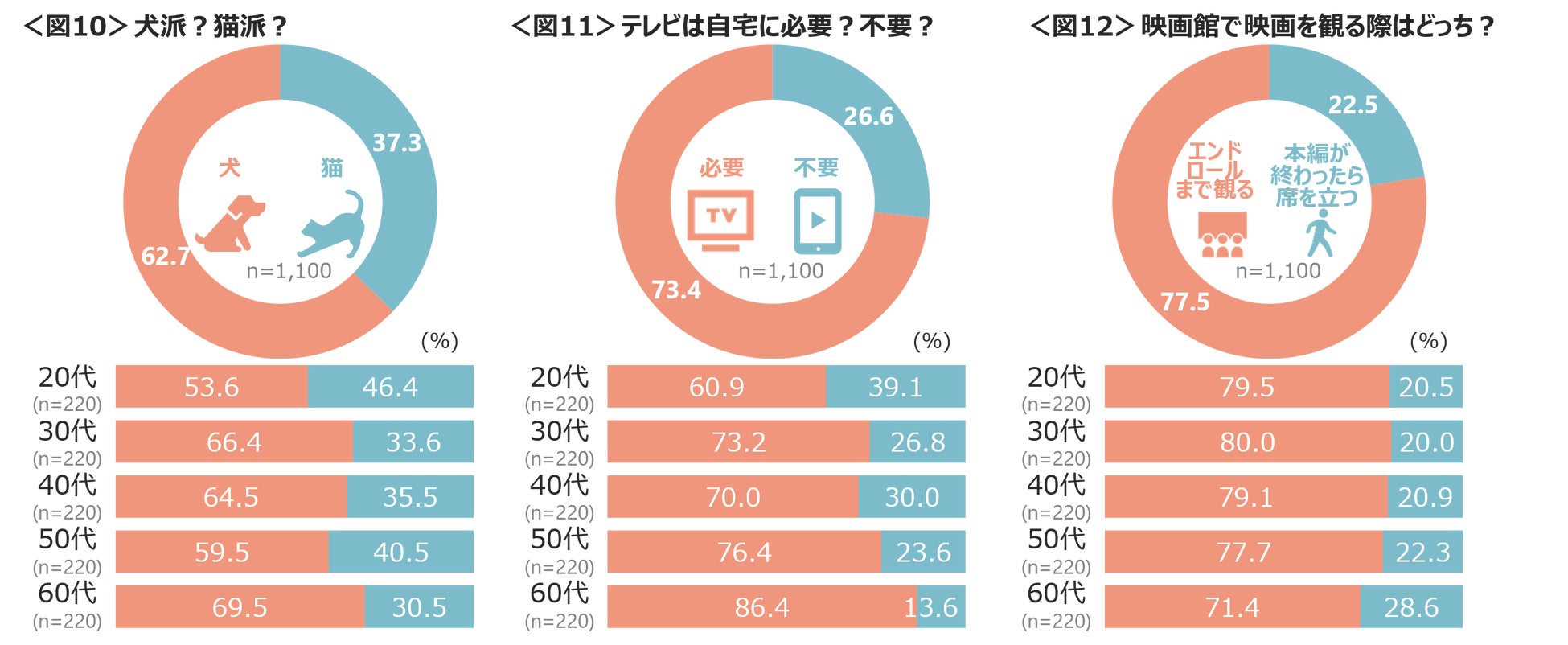 【生活・エンタメ編】「猫」37.3%に対し、「犬」62.7%と「犬」好きが上回る。<図10~図21>