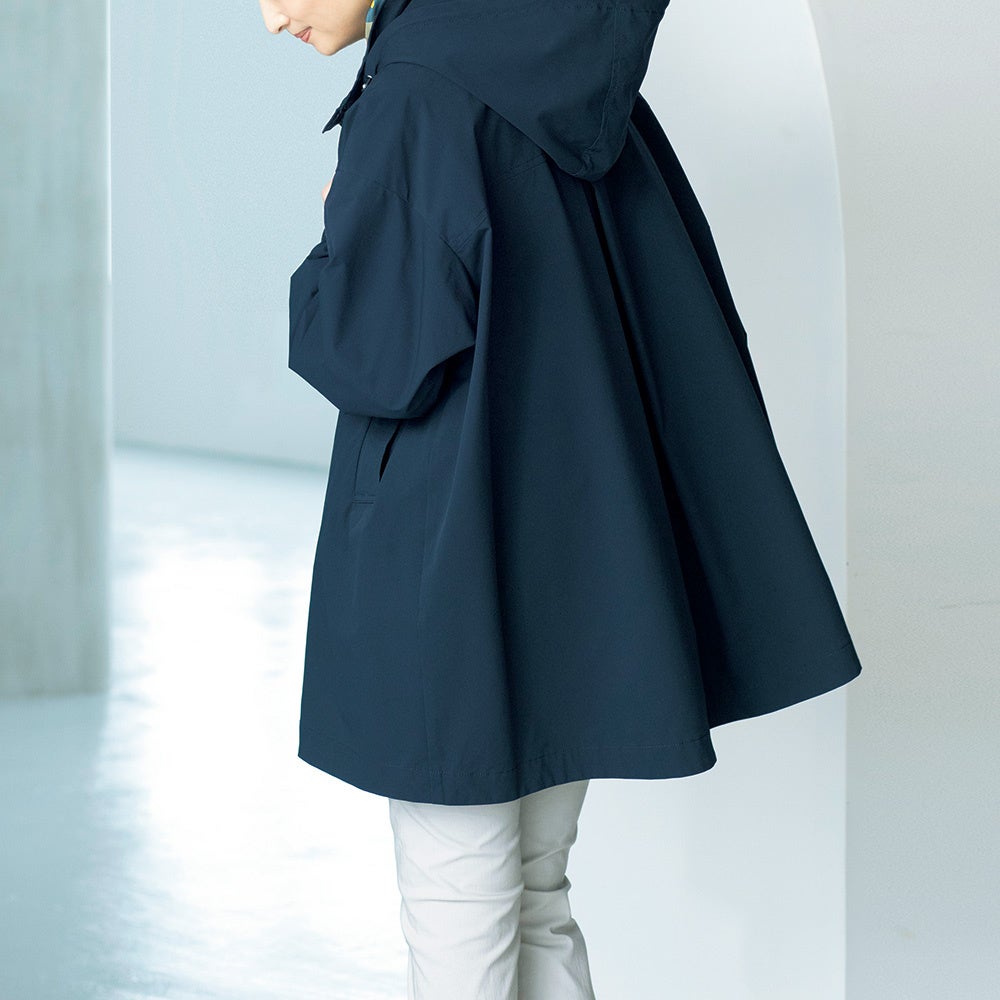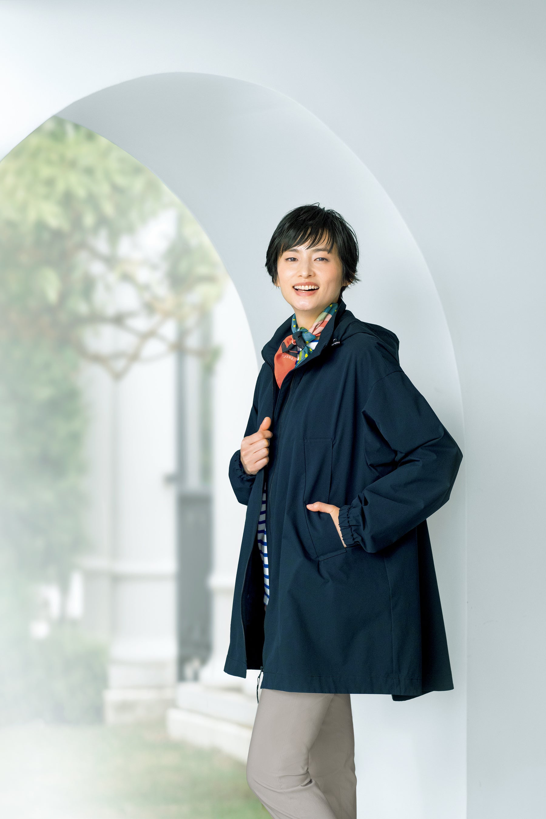 天候が不順な季節の変わり目や旅に活躍してくれるのは、中わた入りのベスト型ライナーが着脱できる伸縮性のあるソフトな撥水コート。やや後ろ下がりのAラインシルエットに大きなポケットがアクセント。スポーティになりすぎずフェミニンに着こなせます。
