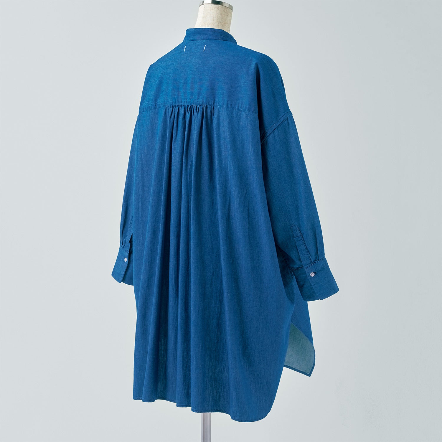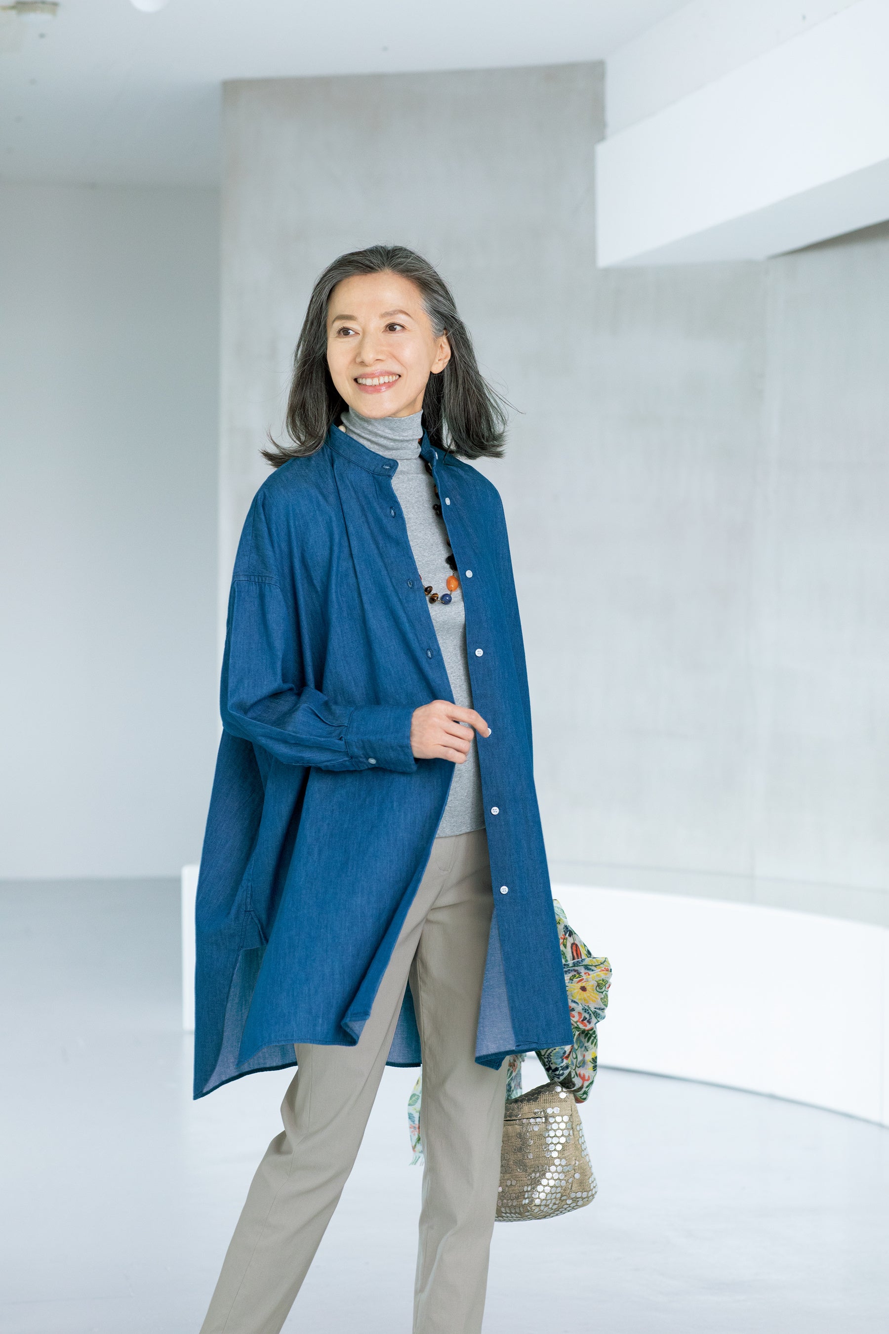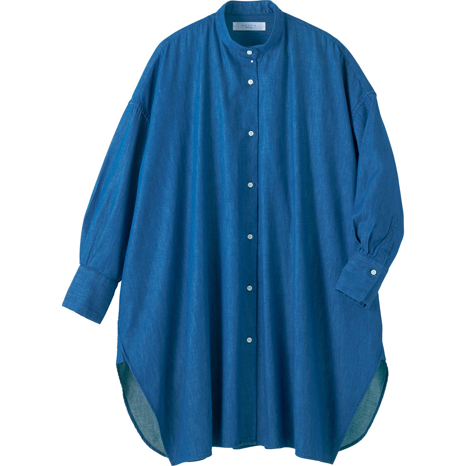 国産デニム発祥の地、岡山県児島のブランド〈セット〉から、薄手でニュアンスのあるムラ糸デニムを使ったオーバーシルエットのシャツ。ふんわりと風をはらんで裾が揺れる軽やかな着心地も魅力。バサッと羽織るだけで、旬のデニムコーディネートが完成します。