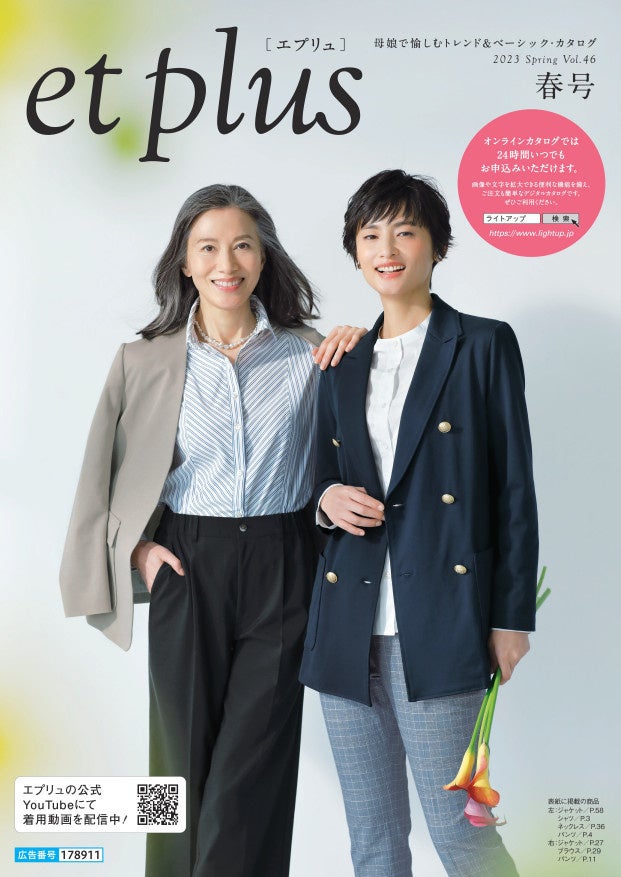 「母娘で愉しむトレンド&ベーシック」をコンセプトにしたカタログ<et plus>春号が、ライトアップショッピングクラブより2月17日(金)に発刊されます。