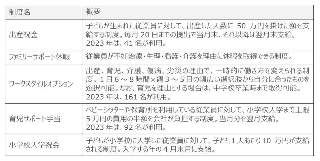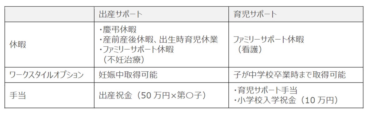 この度、国が推進する少子化対策への適応および従業員のライフプランへのさらなる補助を図るため、出産祝金を増額しました。