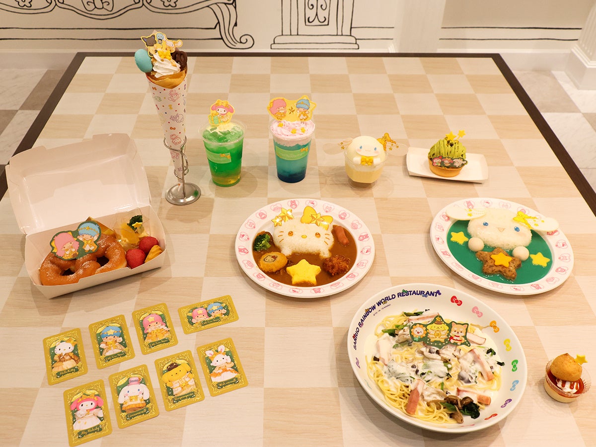 星型のミニオムレツがクリスマスの空で光り輝くような「ハローキティの星に願いを☆オムレツカレー」や、鮮やかなルーと星型のハンバーグやかまぼこ、チーズが入った星づくしの「シナモロールのStar Illumination☆ハンバーグカレー」など、定番のカレーメニューもクリスマス仕様で登場。さらに、プレゼントボックスの緑とりぼんの黄色をイメージした「マイメロディのXmasプレゼント♪ナタデココメロンソーダ」や、なめらかなプリンとレアチーズケーキが入った贅沢な「シナモロールのクリスマスギフト☆レアチーズプリンパフェ」をはじめとしたデザートやドリンクメニューも充実しております。