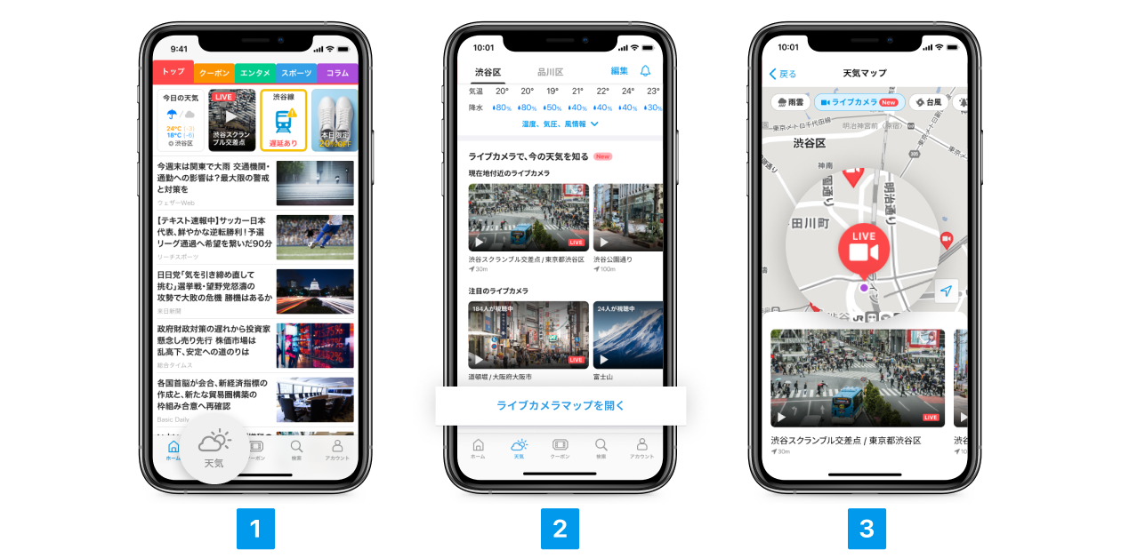 ・内容:SmartNewsアプリ内で、全国約680か所に存在するライブカメラ映像をリアルタイムに視聴が可能。