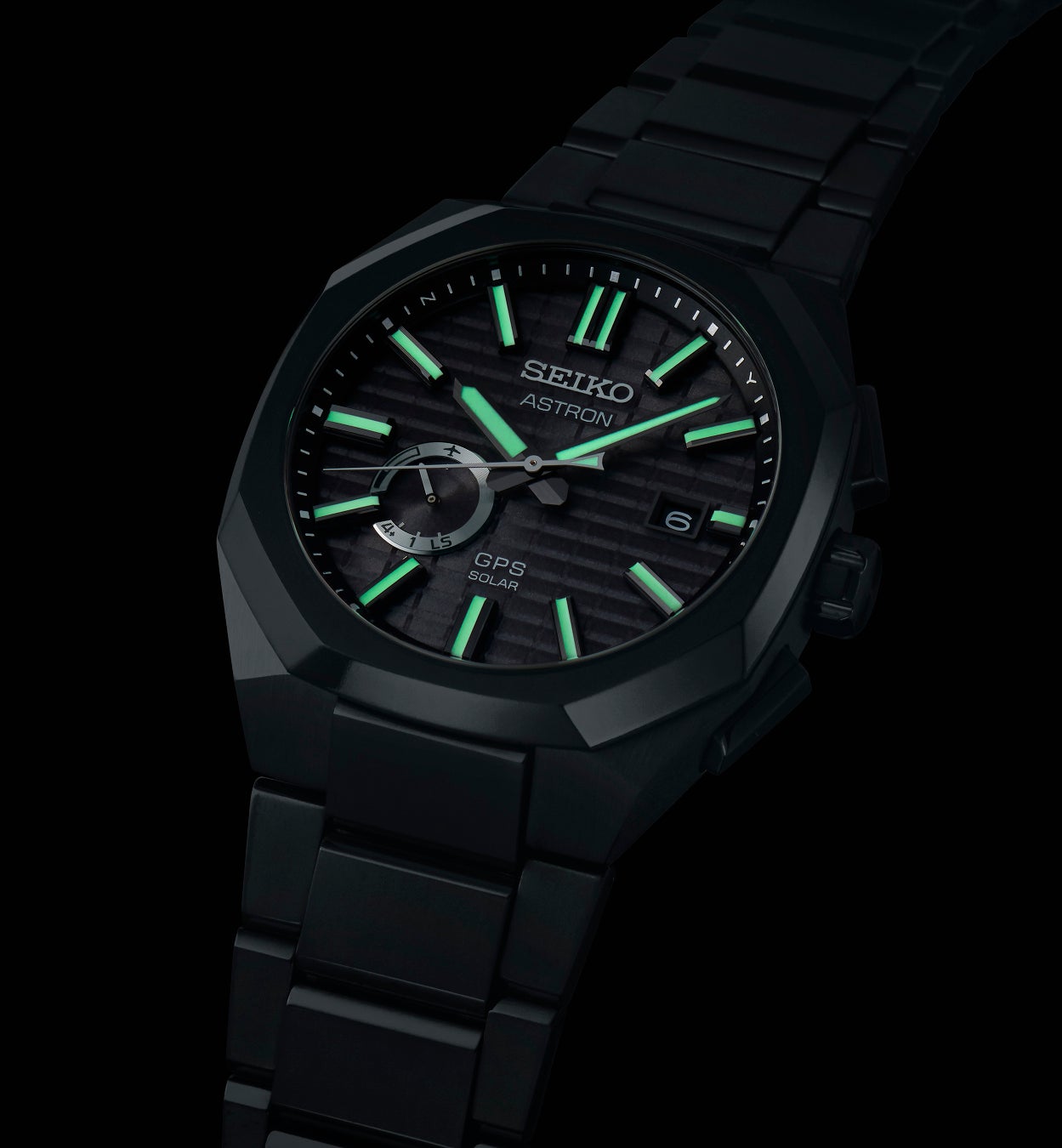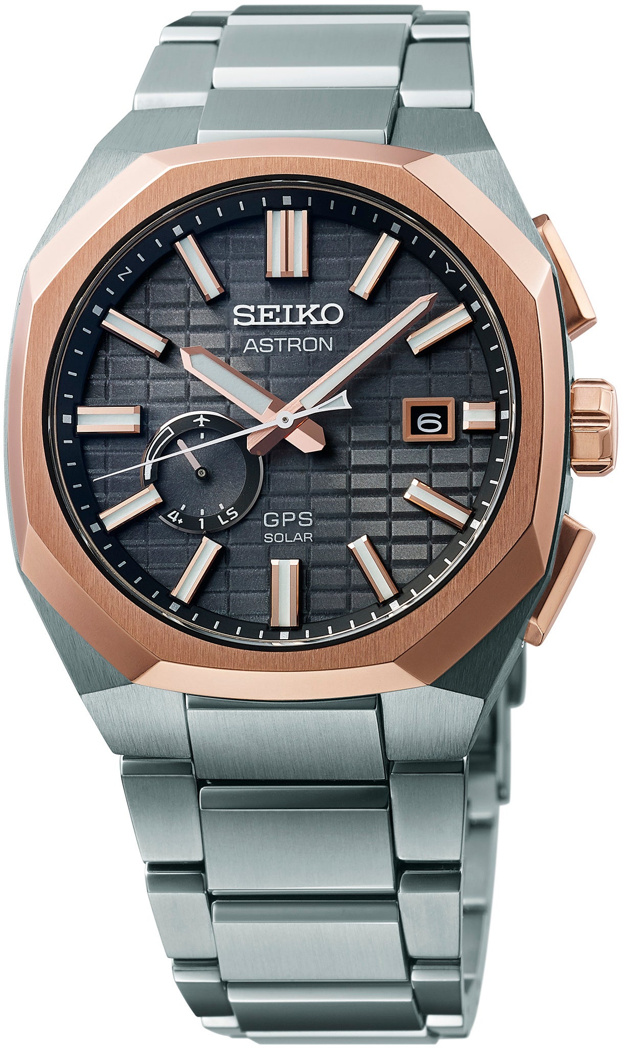 ダイヤルには1969年に発売した初代「クオーツ アストロン」を象徴するクオーツ(水晶)をデザインモチーフにした力強く質感の高い新しい型打ちパターンを採用しています。それは、1969年に誕生したアストロンのDNAを次世代へと繋げていく、ブランドの「歴史」と「先進性」の表れでもあります。また、8時位置のサブダイヤルは、GPS衛星の受信情報や、パワーリザーブ表示、うるう秒データの受信情報、機内モード設定などが一か所で確認できる、シンプルかつ機能的なものです。