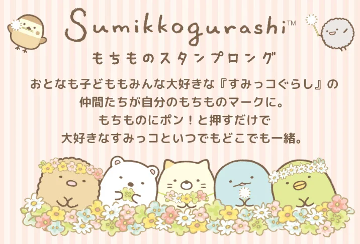 布プラOK!?かわいいすみっコが自分のもちものを教えてくれるお名前つけはんこ「すみっコぐらし もちものスタンプロング」が本店サイトに登場。