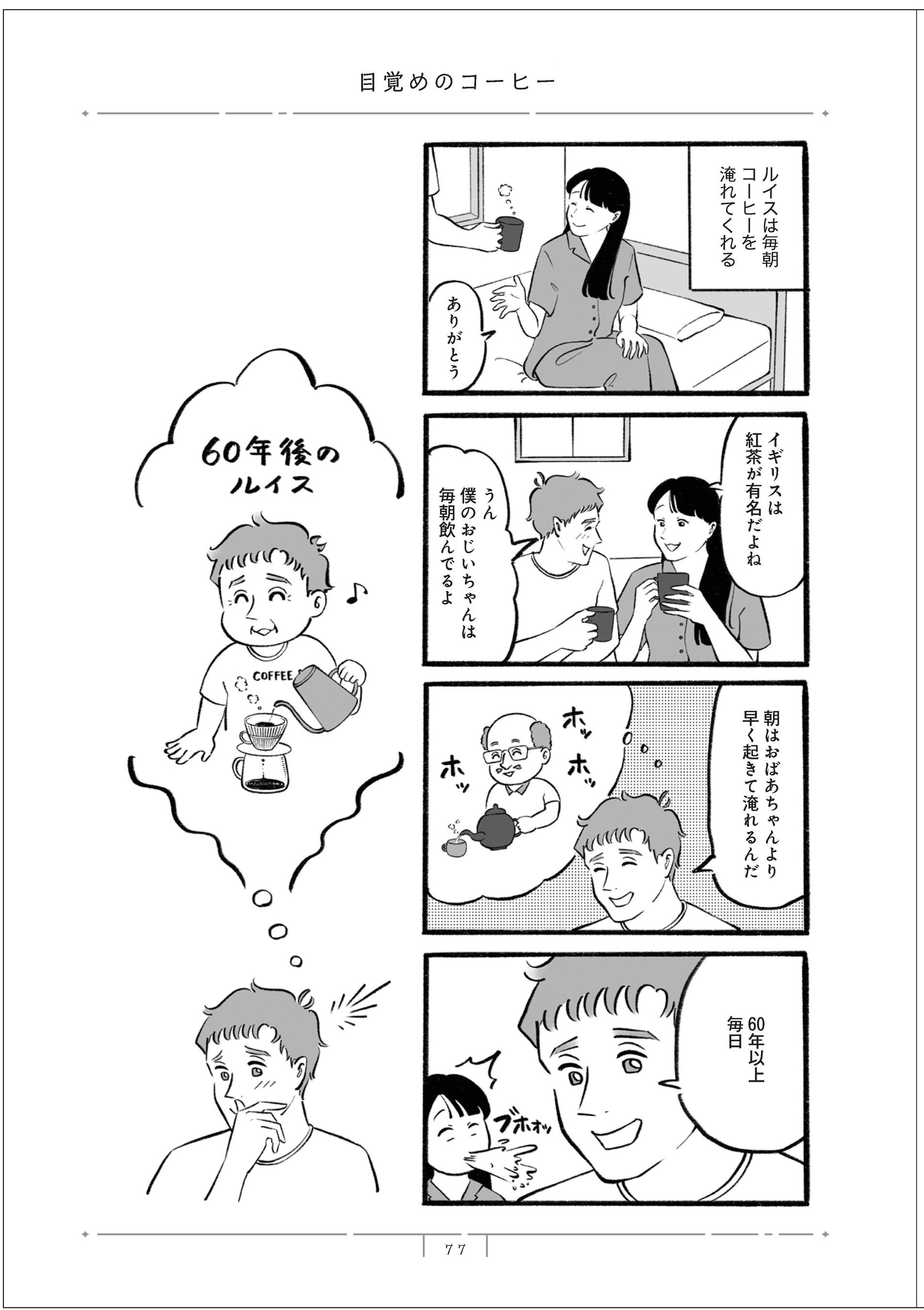 本書では、出会いから結婚、出産を経て現在に至るまでのエピソードをコミック形式で収録。思わず心が温かくなる日常の一コマや、文化の違いから生まれる気づきなどを、やわらかなタッチで描いています。