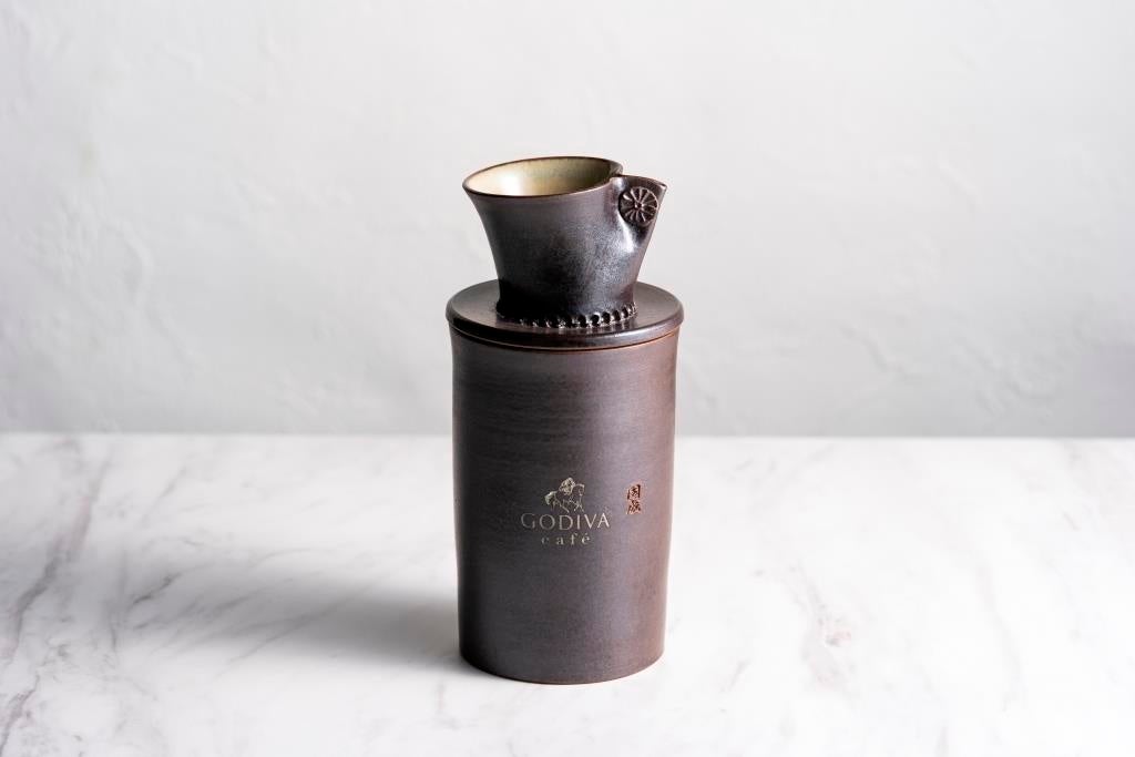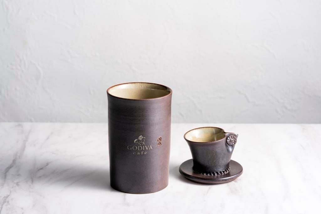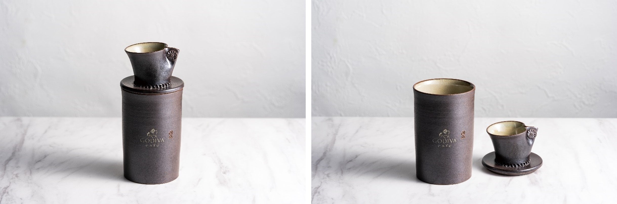 福井県のコラボレーション企画第6弾は、「チョコレートアフォガート そば粉クッキー添え」です。日本六古窯の一つに数えられている越前焼に、GODIVA caféと越前焼の窯元「国成」のロゴを刻印した、越前焼 国成窯 前田和伸さんオリジナルデザインのドッキング式エスプレッソカップ&タンブラーで提供します。