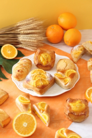 爽やかな香りが広がるバレンシアオレンジやマンダリンオレンジを使った商品など、オレンジの甘酸っぱくて爽やかなおいしさがギュッと詰まったル ビアンのパンを是非お楽しみください。
