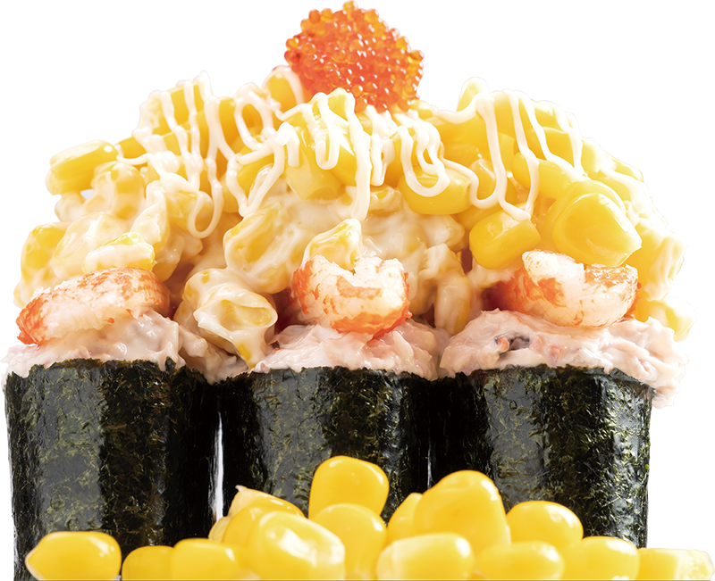 そんな自慢の『サラダ軍艦』3貫にカニカマをどーんと盛り、さらに今年リニューアルし大変ご好評をいただいているコーンをどどどんと盛りつけ!マヨネーズを存分にかけ、頂点にとびこを彩りよくトッピング。黄色いそびえ立つその姿はまさにカミナリマウンテン!?生ものが苦手な方や、お子様にも必ず満足いただける迫力満点の商品です。