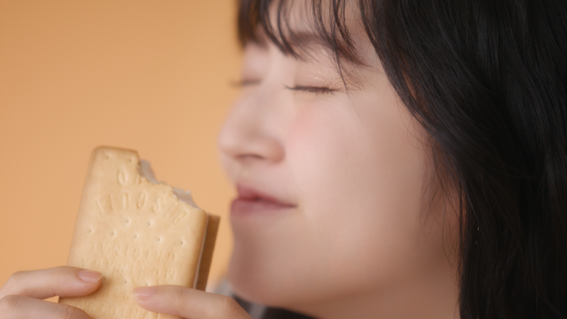 「ビスケットサンド」は1980年の販売開始以降、40年以上皆様に愛されてきたロングセラー商品です。ビスケットのしっとりさと、ミルクのコクたっぷりのバニラアイスクリームが織りなすビスケットアイスを食べると訪れる、しっとりリッチな時間を鈴木愛理さんにWEB動画で表現いただきました。