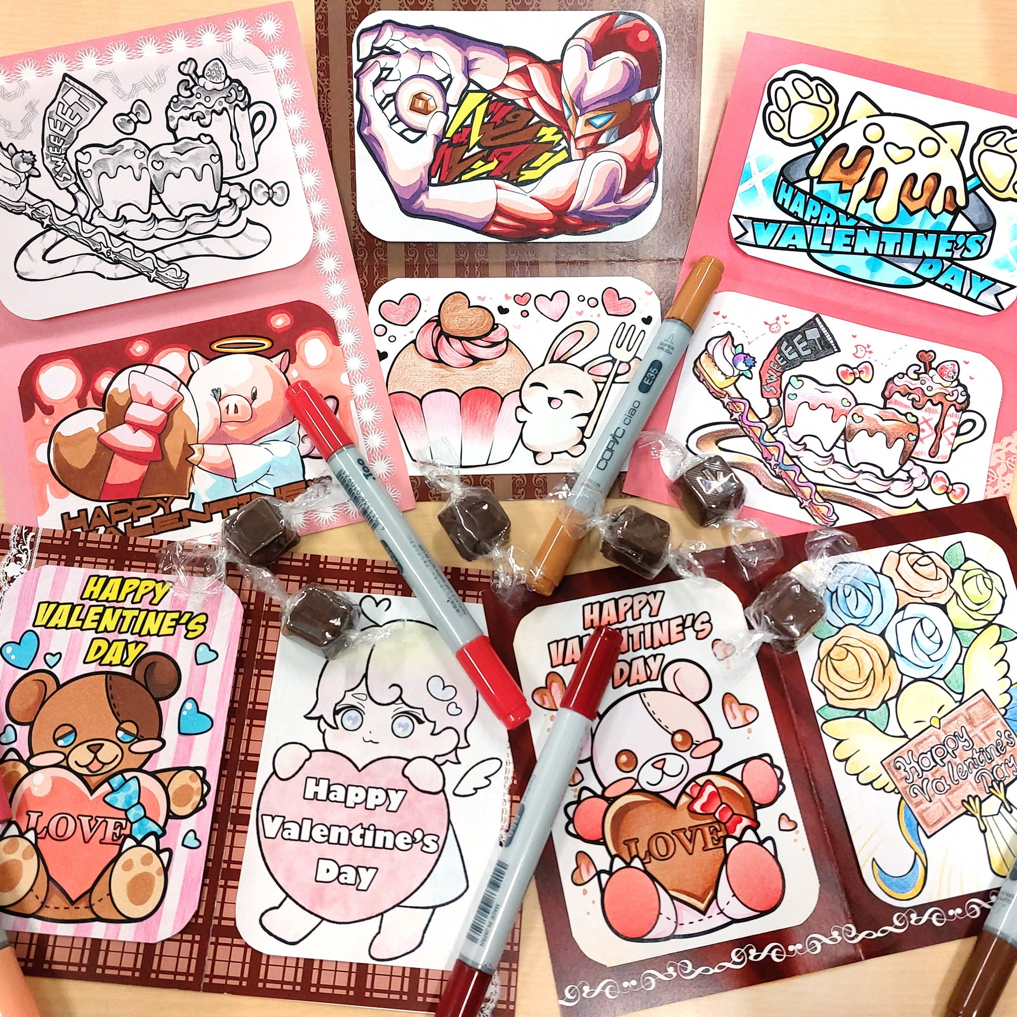 各種「バレンタイン」テーマのイラスト素材に、好きなように描き足し・着色していただく、のみです!お子様から大人の方までお楽しみいただけます!