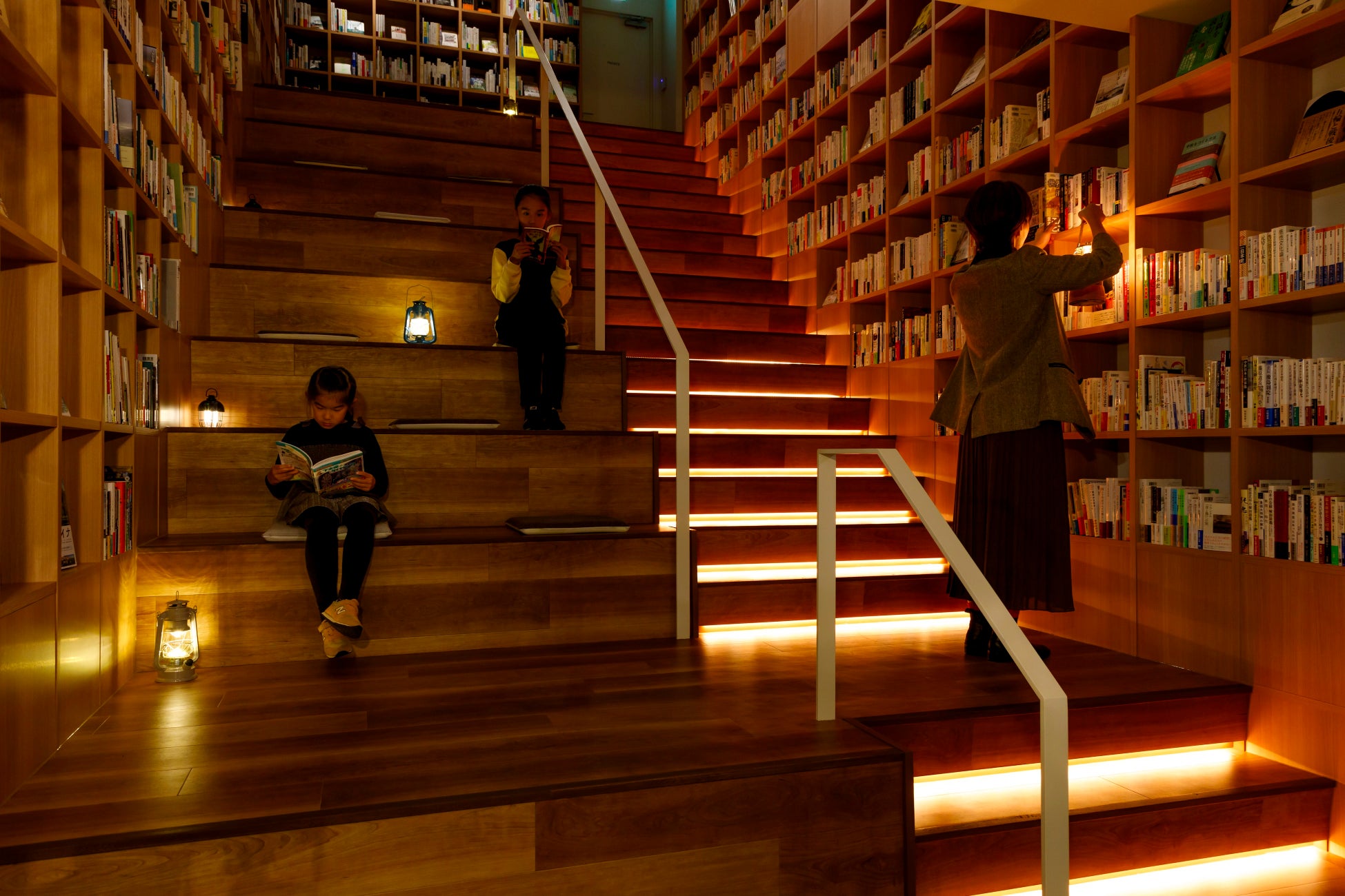 1~2階にある「ねをはすBook&Cafe」の通常営業時間は10時~20時ですが、その後、夜21時~翌朝5時は、宿泊客だけが利用できる“夜の本屋”に様変わりします。ほどよく照明を落とした店内と一人ひとりに配られる手持ちのランタンが冒険心をくすぐり、本棚の間を自由に彷徨いながら、思う存分“書店での夜ふかし”を楽しめます。