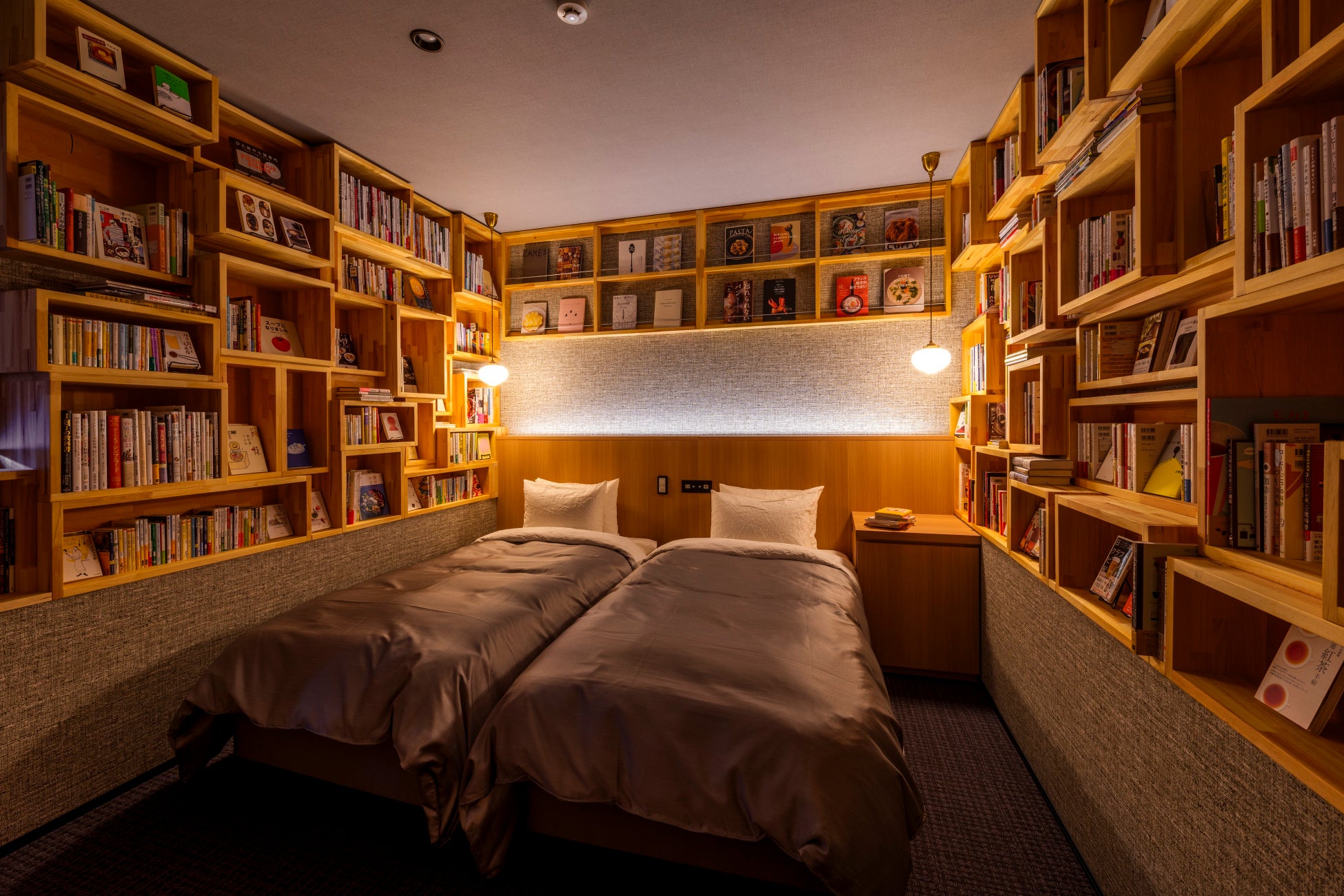 そのほか、広々とした最上階の客室や、シンプルで居心地のよいスタンダードタイプの客室にも、ひと部屋ずつ異なるテーマで本が並びます。