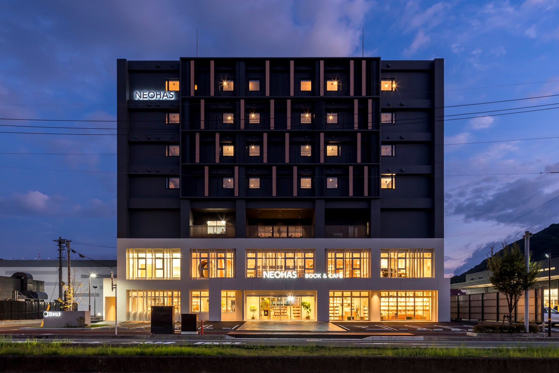 「ねをはす」は、約2万冊の本を販売するカフェ併設の書店「ねをはすBook&Cafe」(1~2階)、下関の食材をふんだんに使った料理が楽しめる「Restaurant Neohas」(3階)、客室ごとにコンセプトや選書ラインナップが異なる全39室の「ねをはす Book&Hotel」(4~7階)からなる、7階建ての複合施設です。地域の人々にとっては、普段づかいの書店・カフェとして親しみやすい場所として、また、県外から下関を訪れる人々にとっては、「ねをはす」に泊まることが旅の目的の一つとなるよう、館内設備やサービスにこだわりました。「地域とのつながりを強め、県外からも人が訪れる賑わいが生まれる場所」を目指します。