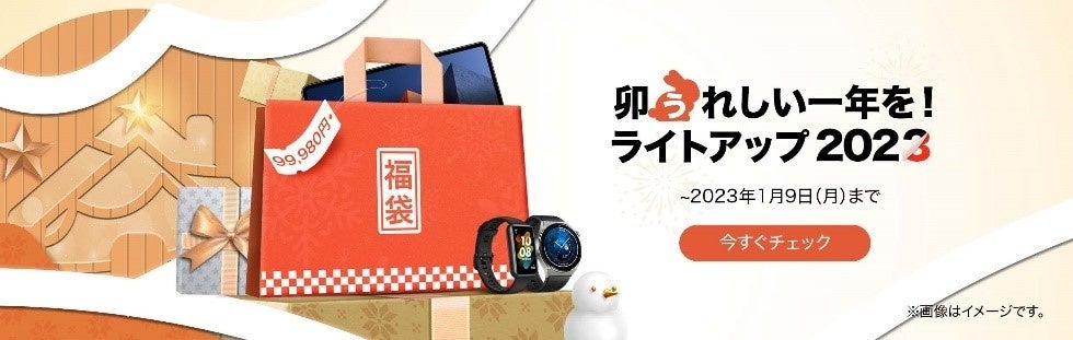 HUAWEI 公式サイトでは、総額約66万円相当の様々なカテゴリの人気製品を一気にお買い求め頂ける「2022年最強スペック集結 やりすぎ福袋(18点入り)」をなんと55%オフの299,980円(税込)にて販売いたします。そのほかにも9,980円~149,980円までさまざまな価格の福袋をご用意。どれも驚きの割引率ですので、お見逃しなく。