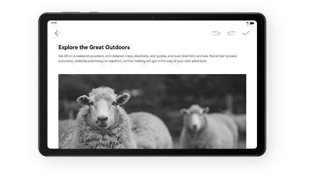『HUAWEI MatePad SE 10.4"』は、HUAWEI eBookモードに対応。画面を下にスワイプするだけで、コントロールパネルから簡単にHUAWEI eBookモードに切り替えることができます。画面の明るさやコントラストを自動的に調整し、コンテンツをグレースケール表示することで、読書に最適な環境を作り上げます。また、ブルーライトがカットされるため、長時間の閲覧でも目が疲れにくく、読書を長時間楽しみたい際に役立つ機能です。