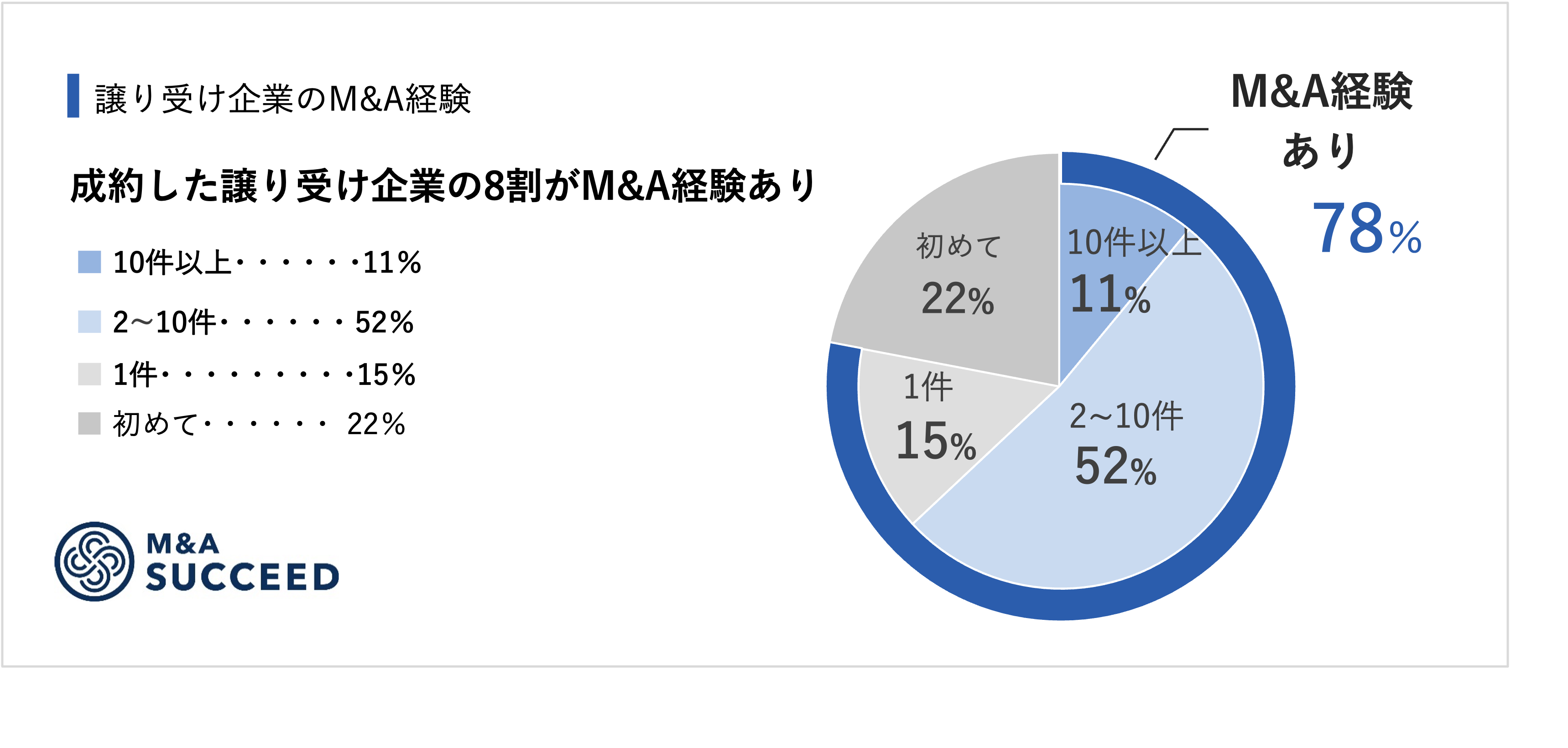 ・M&Aの経験:「M&Aの経験がある」が78%(「2件以上M&Aの経験がある」が63%)