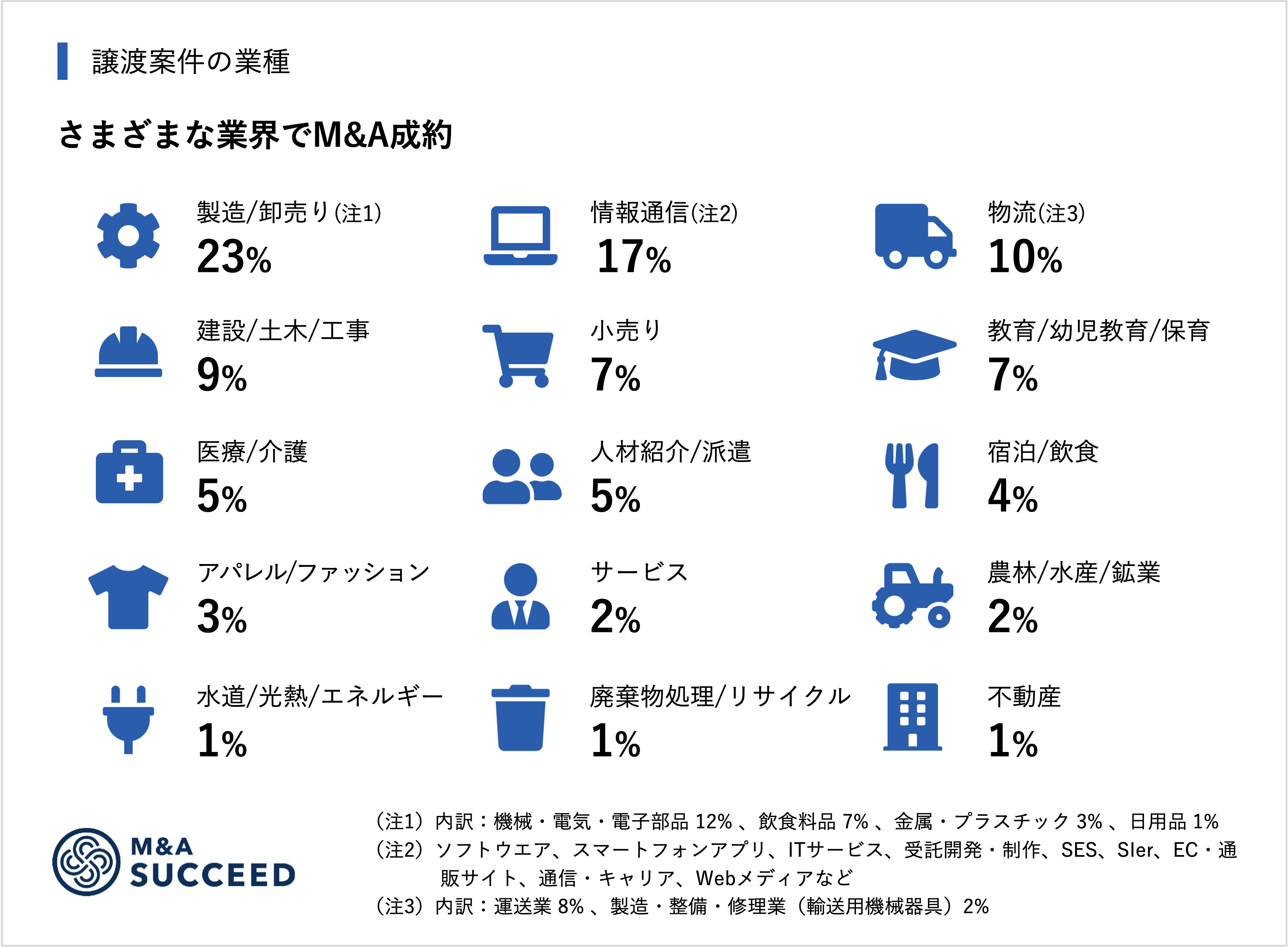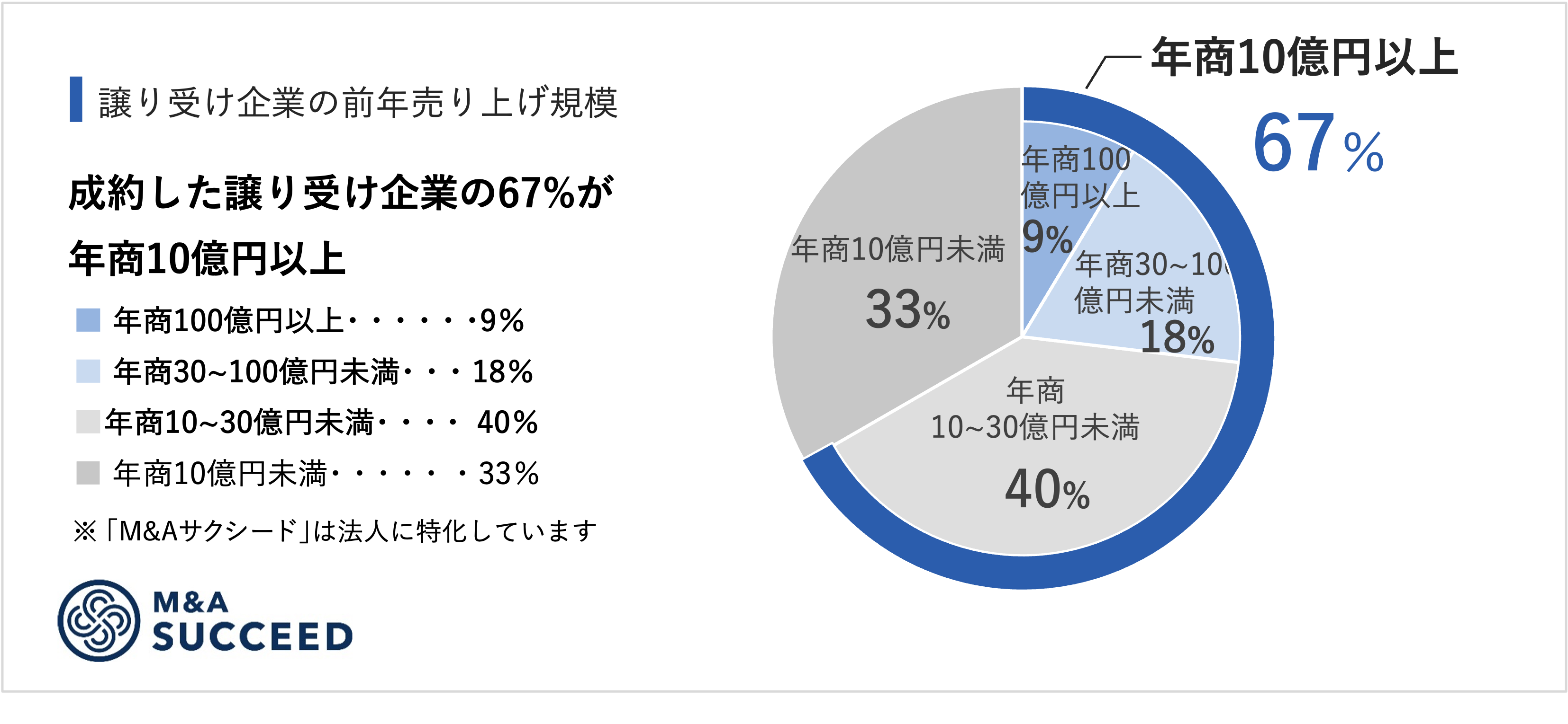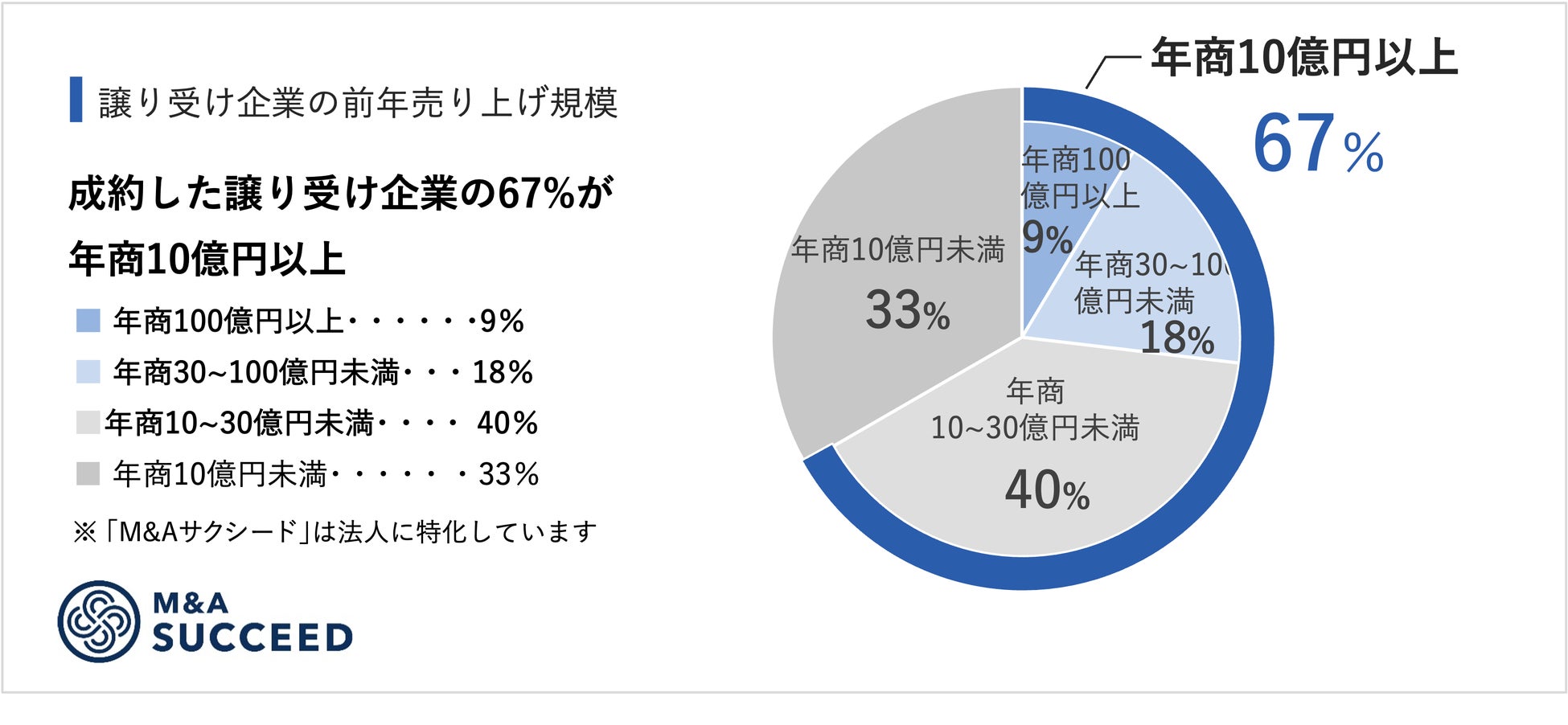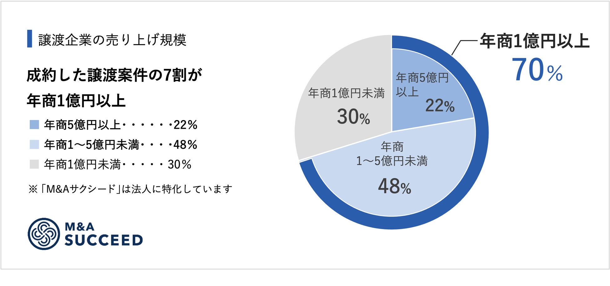 法人・審査制M&Aマッチングサイト「M&Aサクシード」、2022年M&A成約企業データ公開:譲渡案件の70%が年商1億円以上、譲り受け企業の67%が年商10億円以上