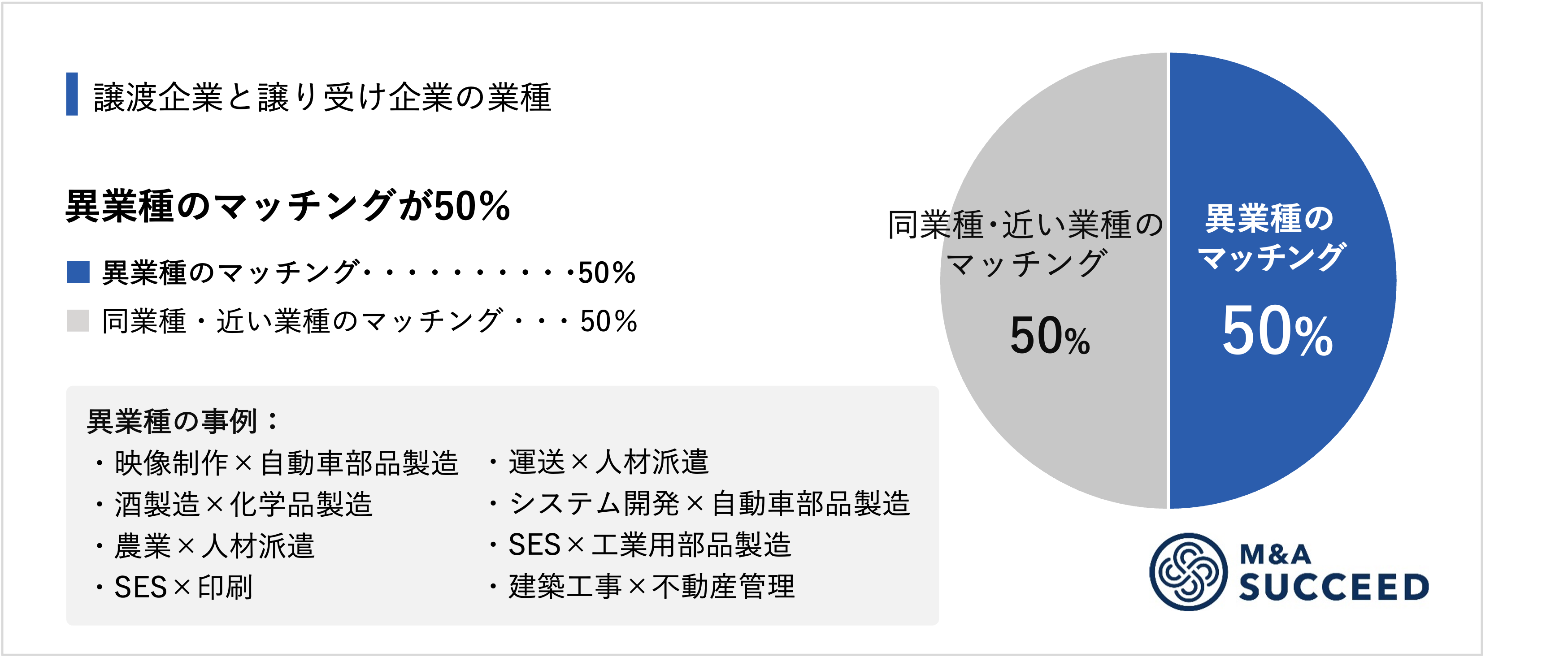 57%が成約まで半年以内、63%が隔地間M&A、50%が異業種M&A