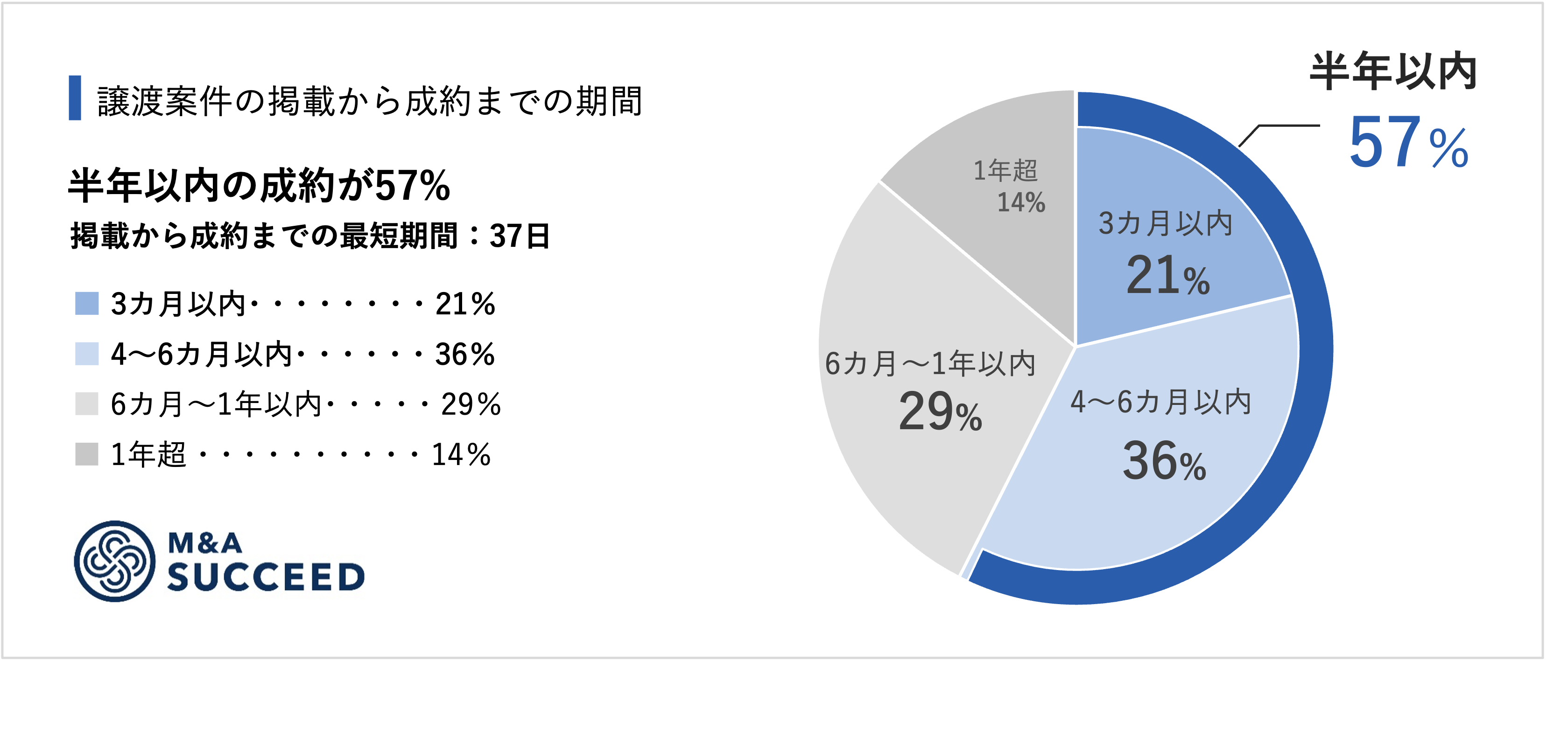 ・譲渡案件の掲載から成約までの期間:「半年以内」が57%