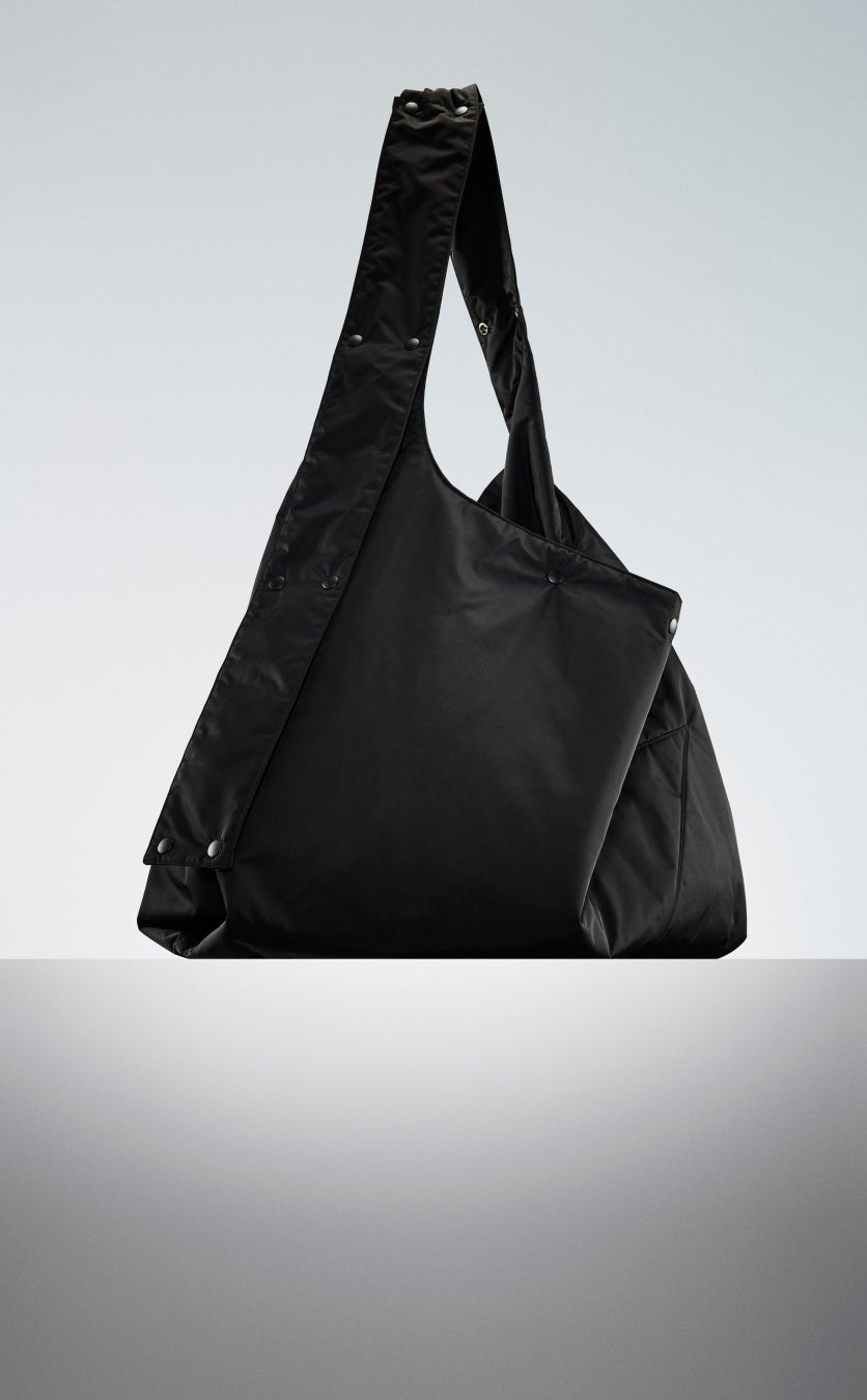Yohji Yamamotoのドレスの一部を切り取り再構築したUNEVENNESSは、ふわっとした膨らみが入れた物によって流動的に変化するユニークな造形。摘まみ上げられた凸凹が印象的で、柔らかなバッグは、内装の袋を少し底上げすることで、モノを入れてもバッグのドレープが美しく再現され崩れない設計。ポリエステルツイルで仕立てられた、より気負わず使うことが可能なモデル。特殊な糸を使う事でポリエステルでは珍しい深い黒を実現。