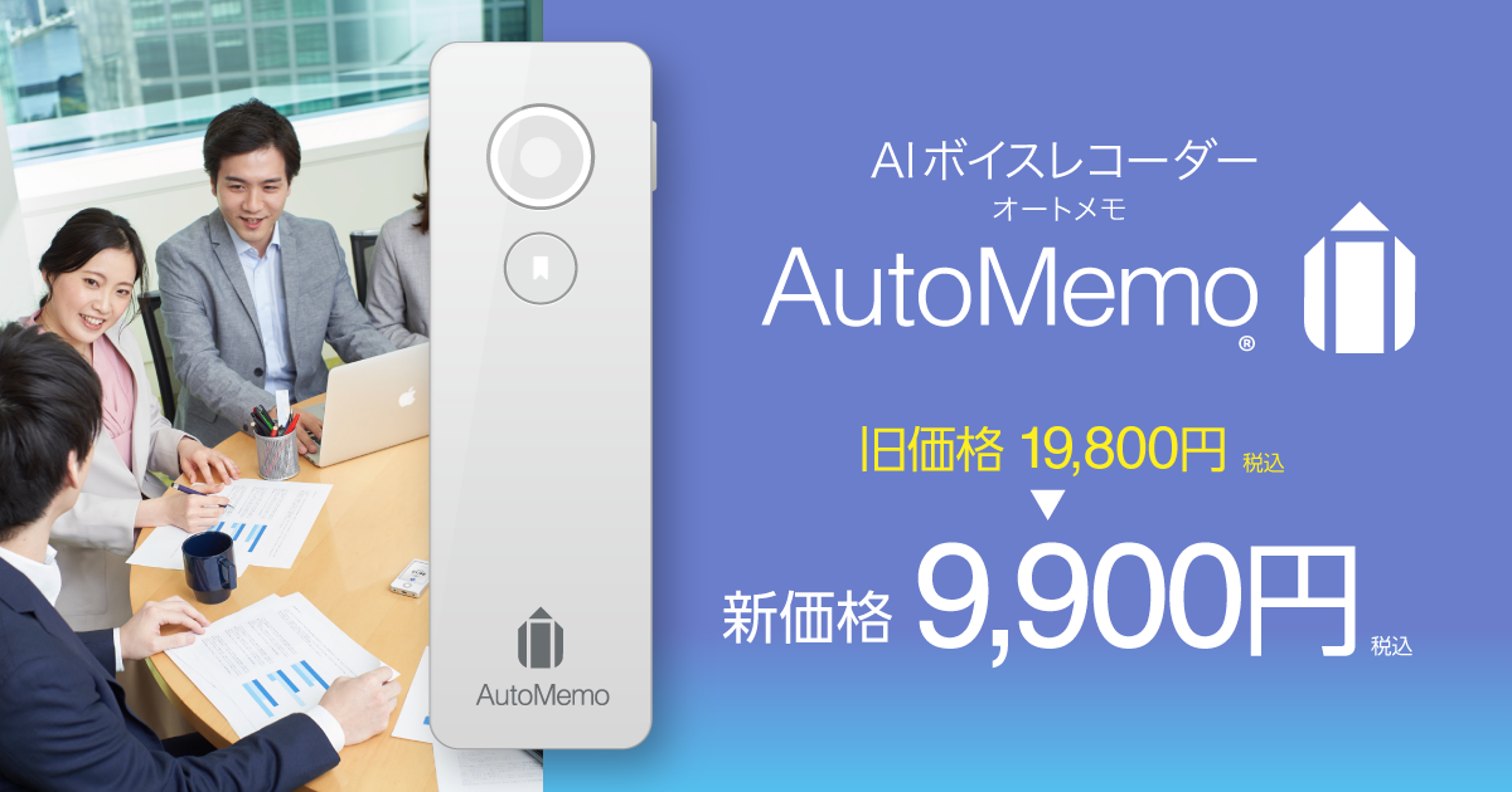 AIボイスレコーダー「AutoMemoⓇ(オートメモ)」を価格改定 本日より新価格9,900円(税込)に