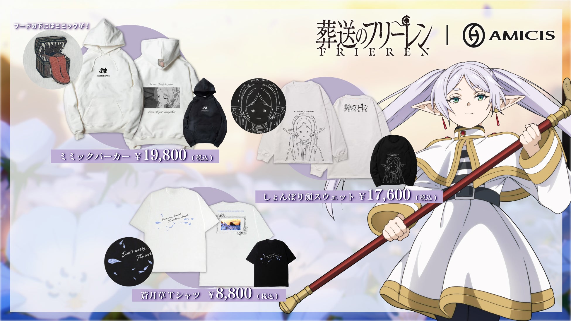 「いつでもどこでも、あなたらしさを。」をコンセプトに、『葬送のフリーレン』の世界観をふんだんに取り入れつつ、普段使いしやすいデザインに仕上げました。「蒼月草Tシャツ」「ミミックパーカー」「しょんぼり顔スウェット」の3種類を、ホワイトとブラックの2色でご用意しています。