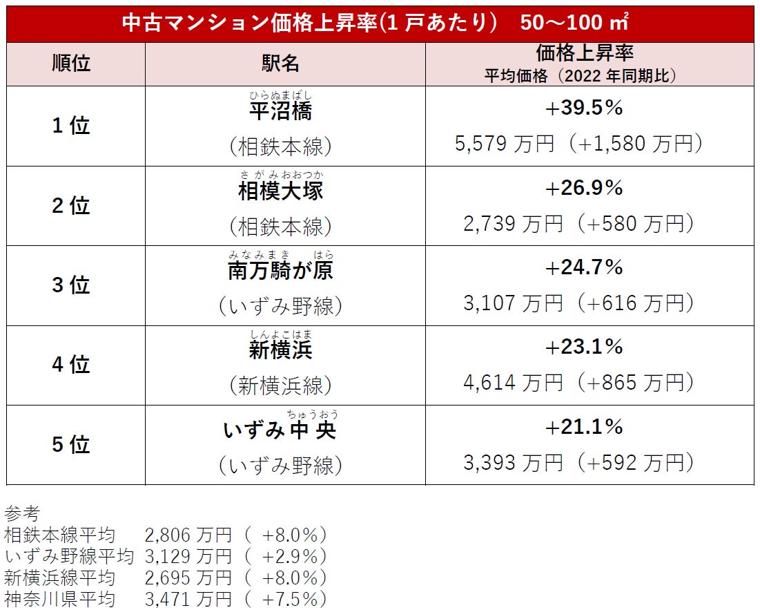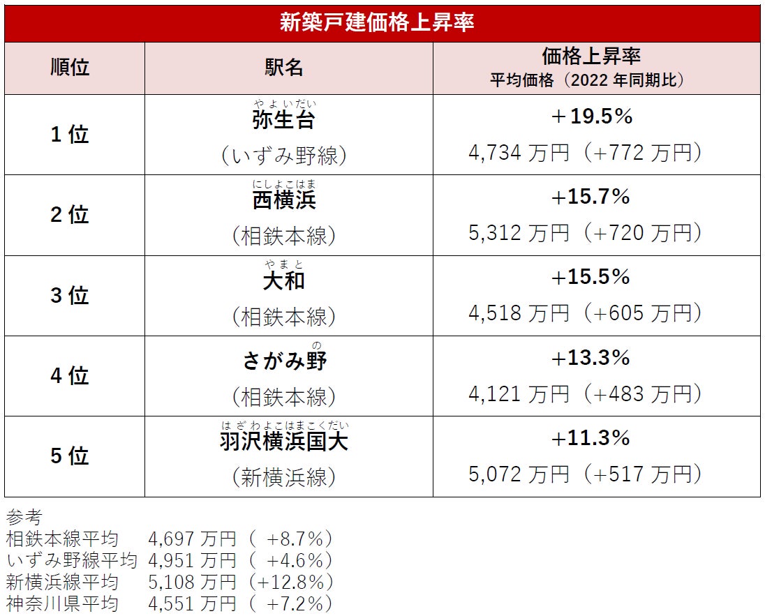 2023年3月の新横浜線開業で都心へのアクセスが向上した「相鉄線」(相鉄本線・相鉄いずみ野線・相鉄新横浜線)において、開業前の2022年と比較して価格・家賃が上昇した駅のランキングを発表いたします。