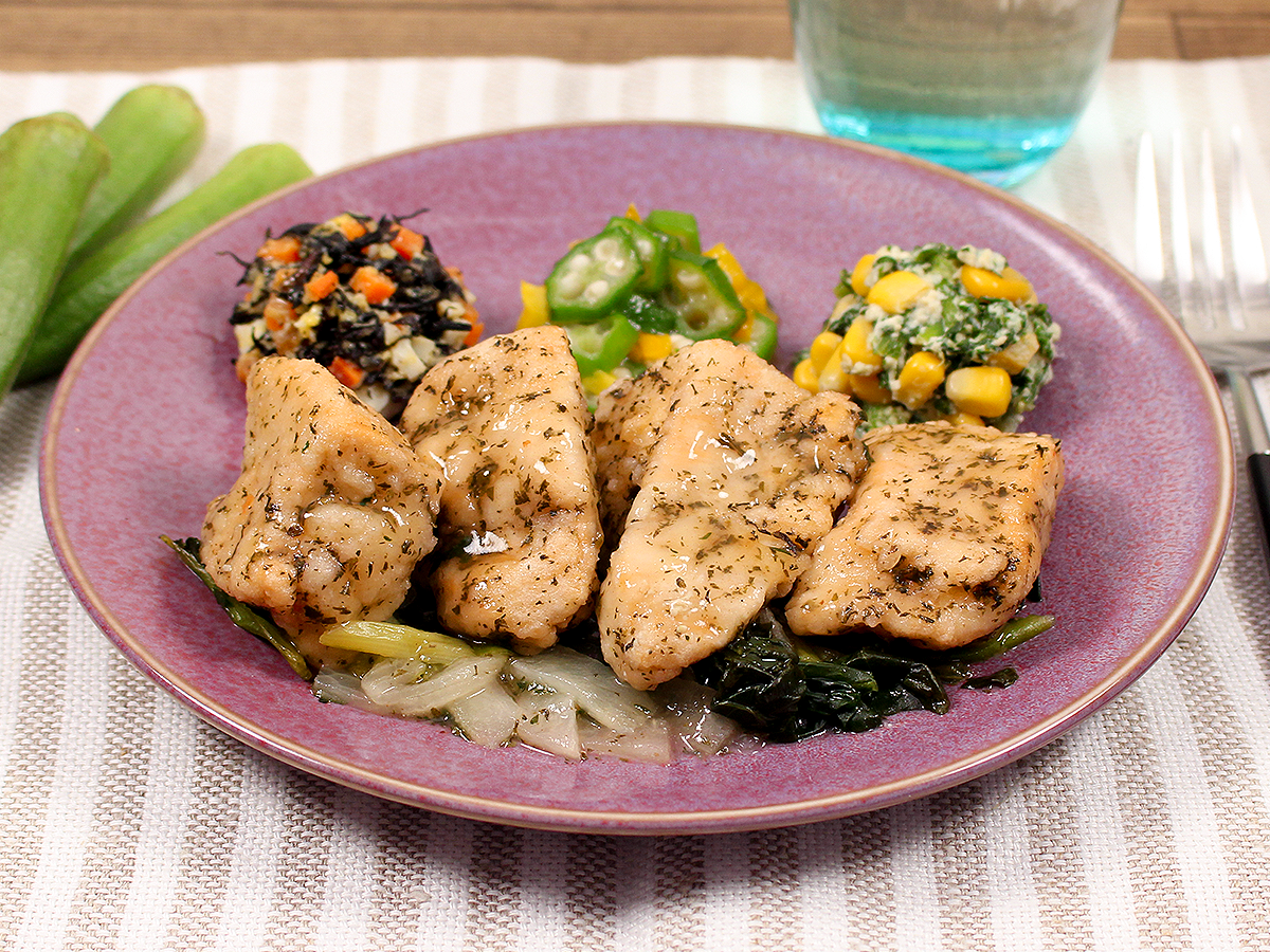 ふりかけでお馴染み、三島食品の「ゆかり®︎」使用!しっとり揚げた鶏のむね肉と香り高い「ゆかり®︎」は相性抜群!爽やかな香り、旨みにハマること間違いなしです!