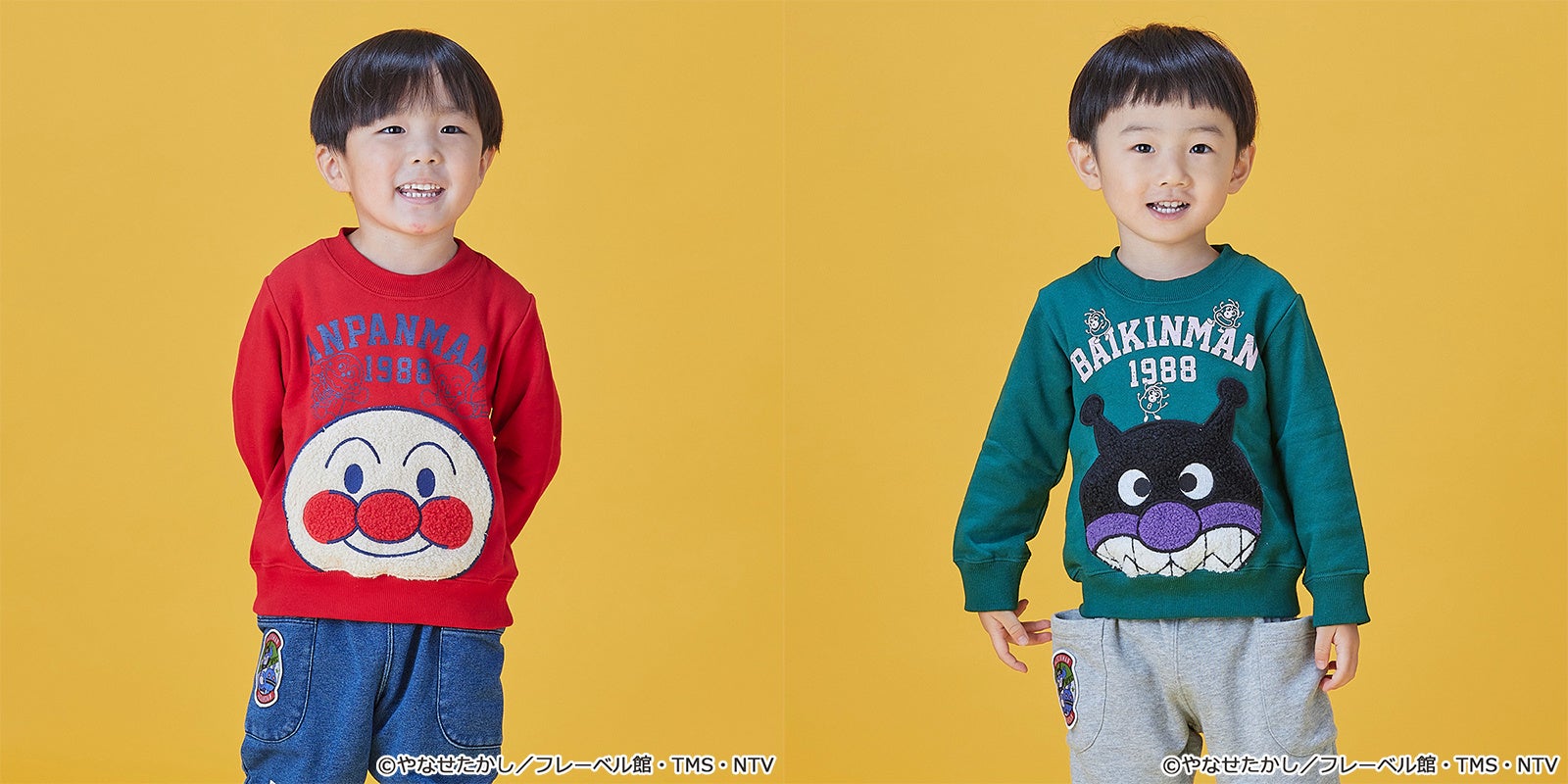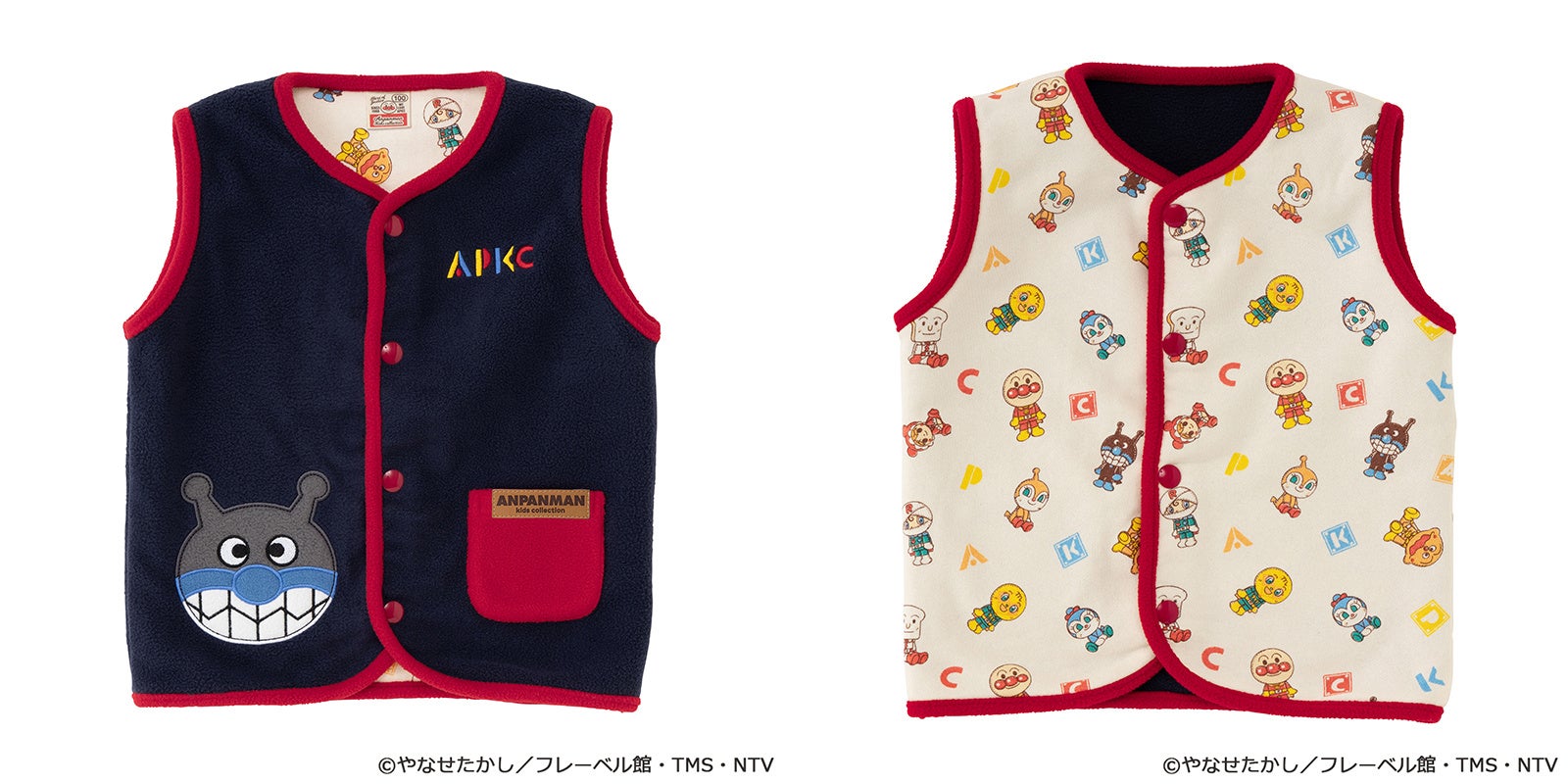 アンパンマンとばいきんまんの顔がポケットに!遊び心たっぷりで暖かい♪冬に活躍するトレーナーやアウターが新登場!