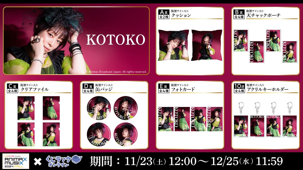2024年11月23日(土)より『KOTOKO』のオンラインくじを、「くじラックオンライン」で販売いたします。