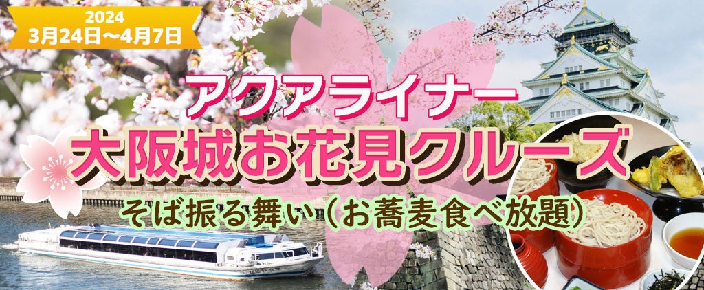 3月24日~4月7日限定!お一人様¥4,680- 春季限定水都大阪の定番お花見クルーズ 《13:30発》水上バス アクアライナー 大阪城お花見クルーズ +そば振る舞い(お蕎麦食べ放題)