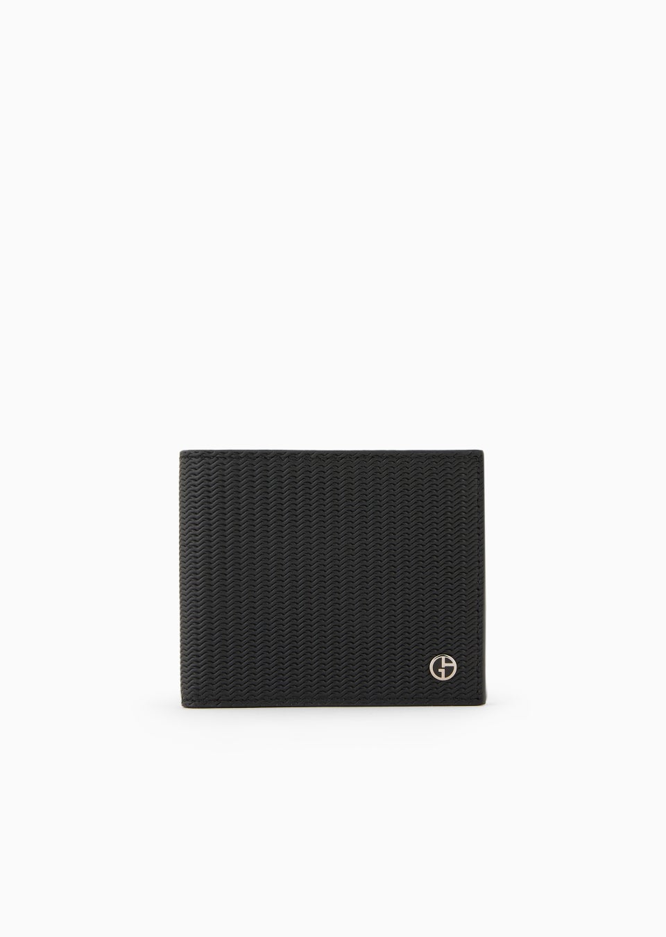メンズからはウェーブモチーフを施した二つ折りウォレットをご紹介します。コンパクトなサイズでありながら、お札入れやジッパー付きコインポケットなど高い収納力を備えているのも魅力です。しなやかなエンボスレザーにフロントにデザインされたメタルのGAロゴがさりげなく彩りを添えます。