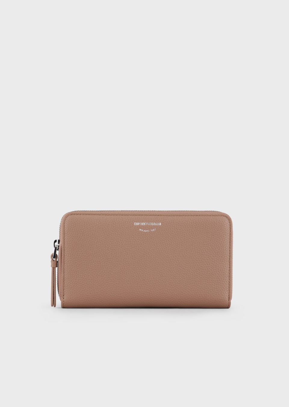 ウィメンズからは、アイコンバッグ「MyEA」シリーズから、ラウンドファスナータイプのウォレットをご紹介します。お札を折ることなくスムーズに出し入れができ、多数のカードスロットが備わり実用性も抜群です。