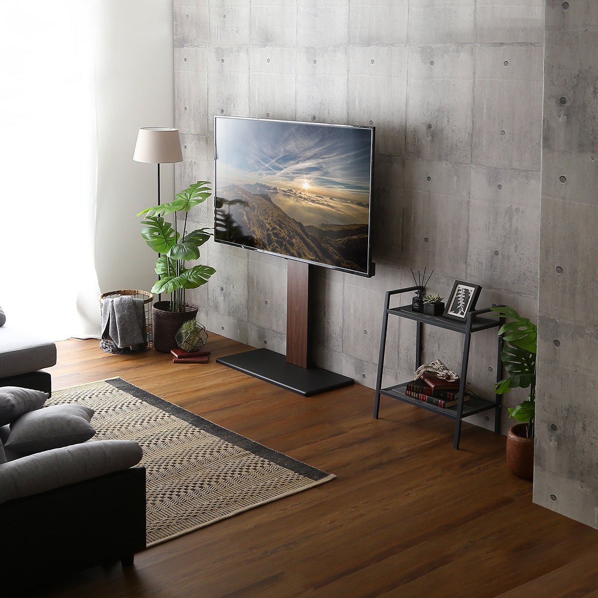 持ち家や賃貸の壁に穴を開けなくても設置が可能で、かつスリム設計のため、お部屋を広々お使いいただけます。また、テレビの配線や電源コードなどはテレビスタンドの支柱に隠れるので、見た目もスッキリできます。