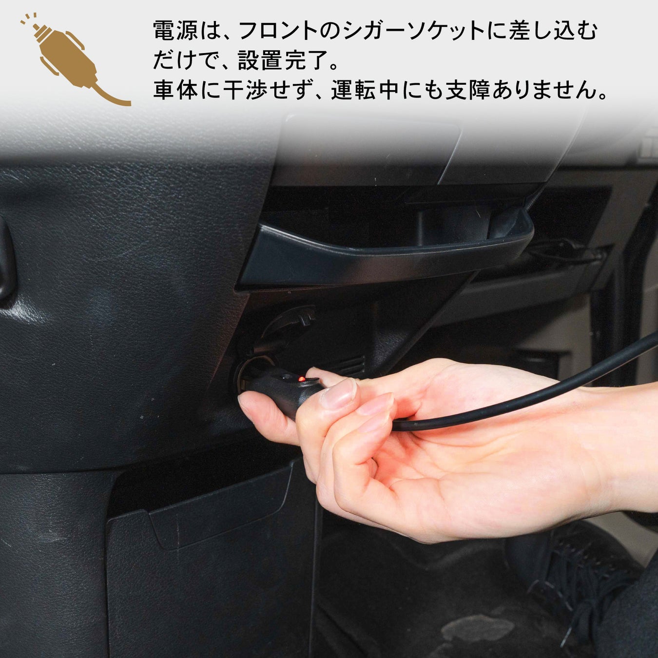 電源はフロントのシガーソケットに差し込むだけで設置完了。