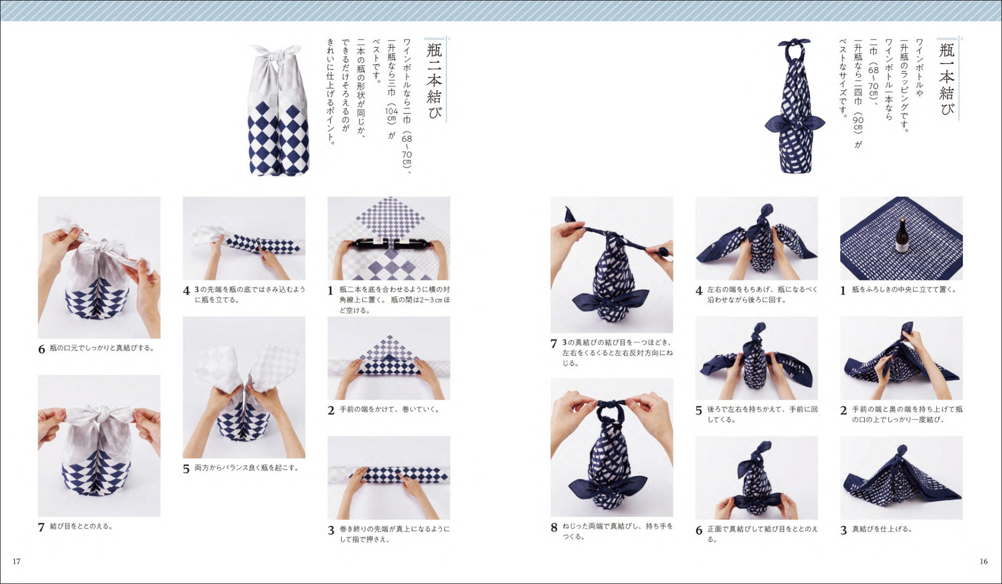 犬とお散歩-しずくバッグ/ゆかたでデート-すいか包みのアレンジ/のんびりお買い物-きんちゃくバッグ/ヨガのレッスンに-二つ結び/お仕事はスマートに-リボンバッグ/ゆったりリゾート-ショルダーバッグ/自転車に乗って-ボディバッグ/ギフトラッピング/ボトルラッピング