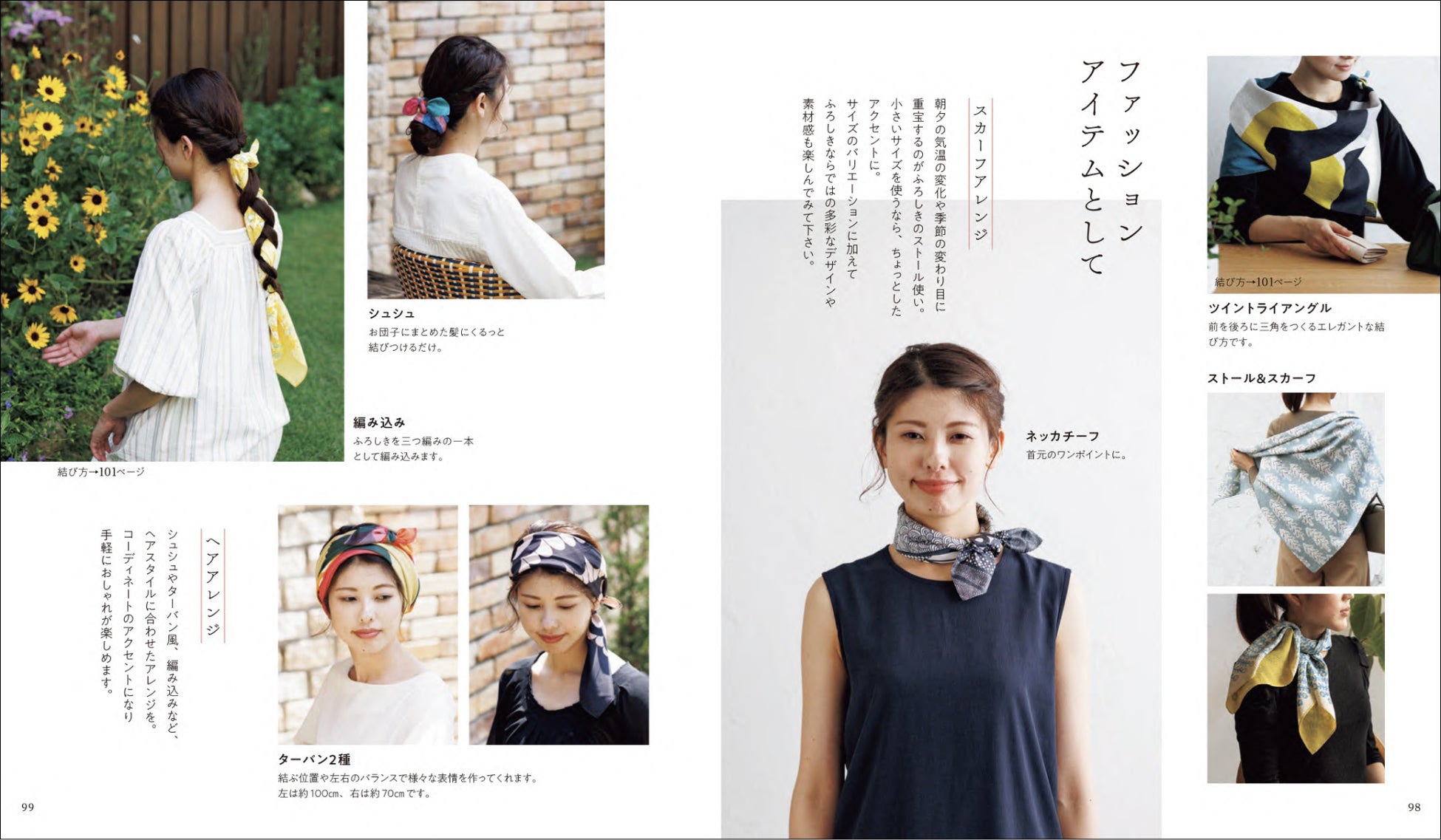 ふろしきの伝統的な包み方から、各シーンに使えるさまざまなバッグ、プレゼントを素敵に彩るギフトラッピング、アウトドアや災害時のファーストエイド、そしてファッションアイテムまで、50のアイデアを紹介します。