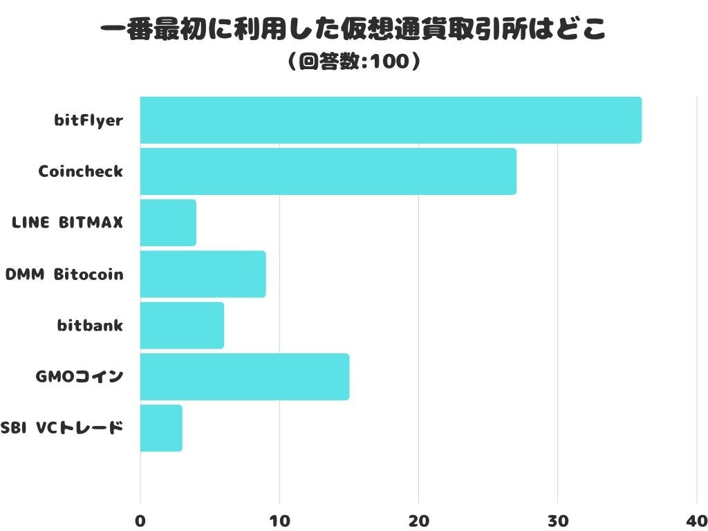 一番最初に利用した仮想通貨取引所をアンケートにて調査したところ、1位は「bitFlyer」でした。
